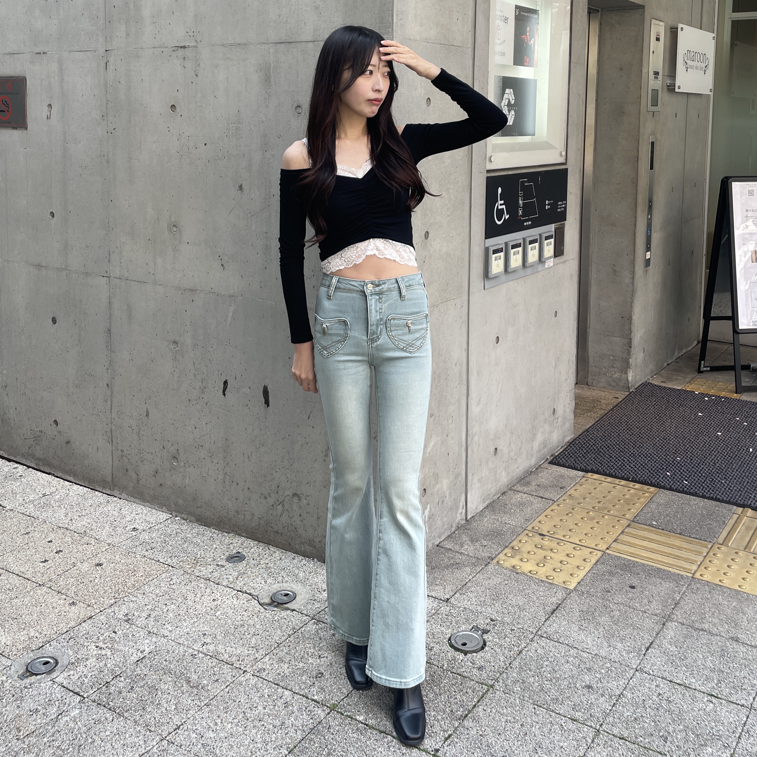 ◯ハートポケットデニムフレアパンツ ¥7,580(tax in)