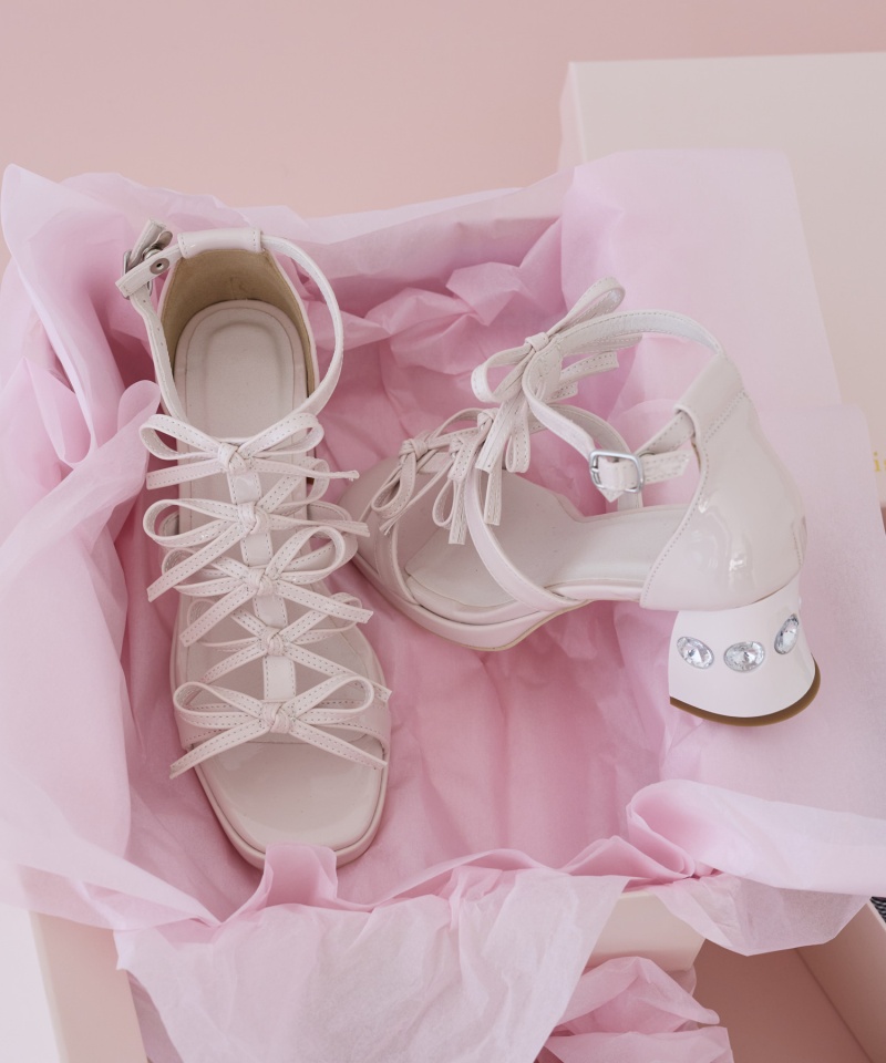 レースアップや華奢なリボン、ビジューなど