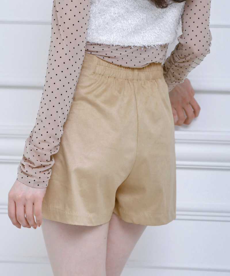 滑らかな肌触りが魅力のフェイクスウェード生地を使用した女性らしい1着。