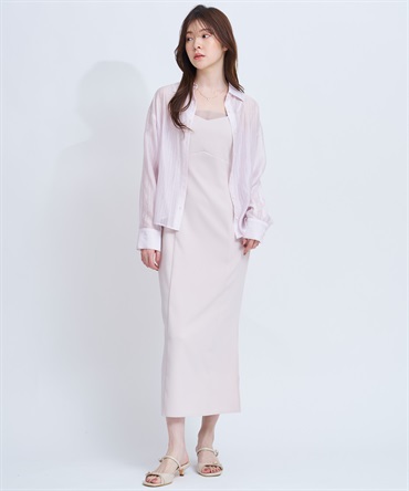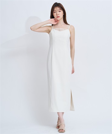 シアー素材をレイヤードしたようなデザインが印象的な、上品なキャミワンピース。