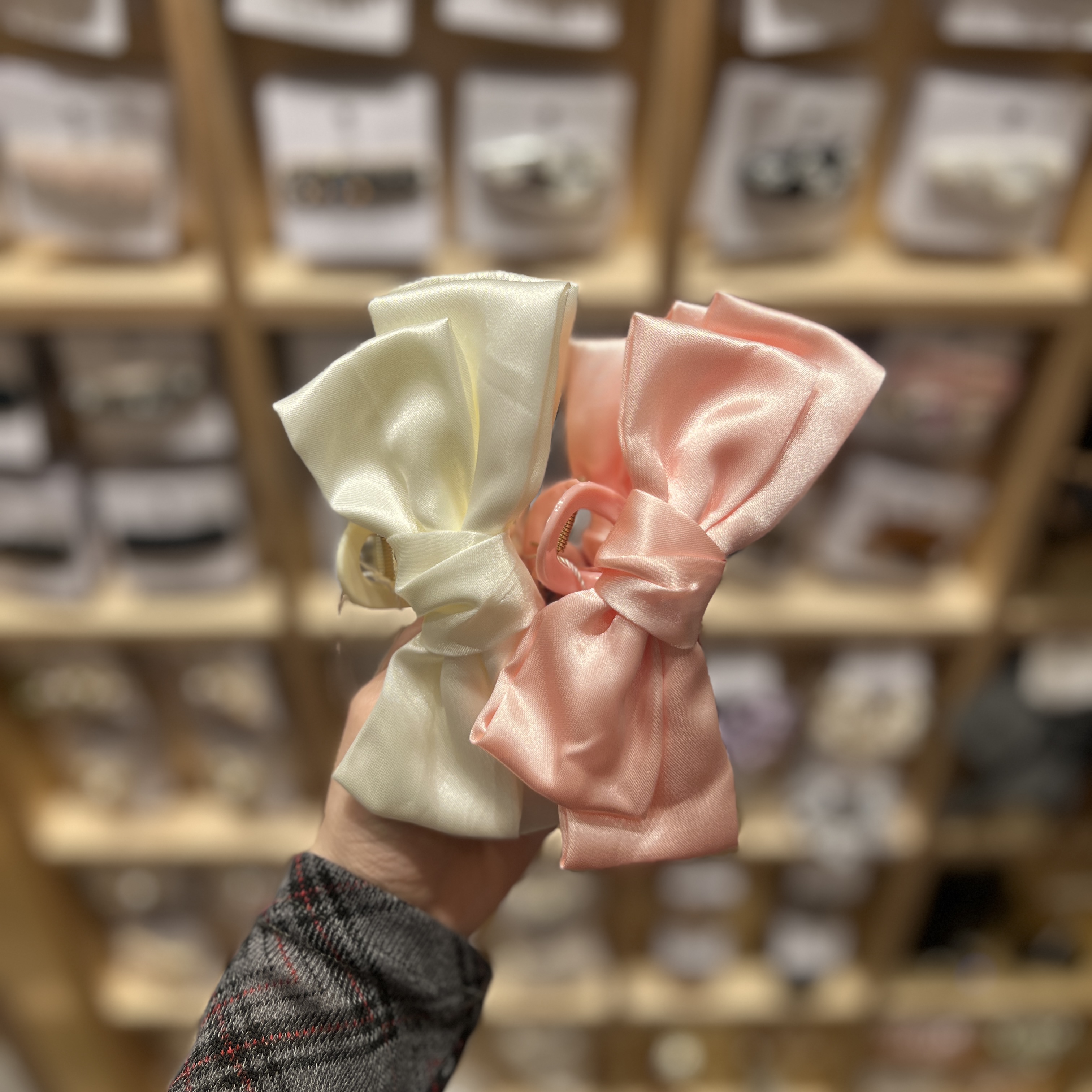 サテン素材の大きなリボンがポイントのバンスクリップ🎀