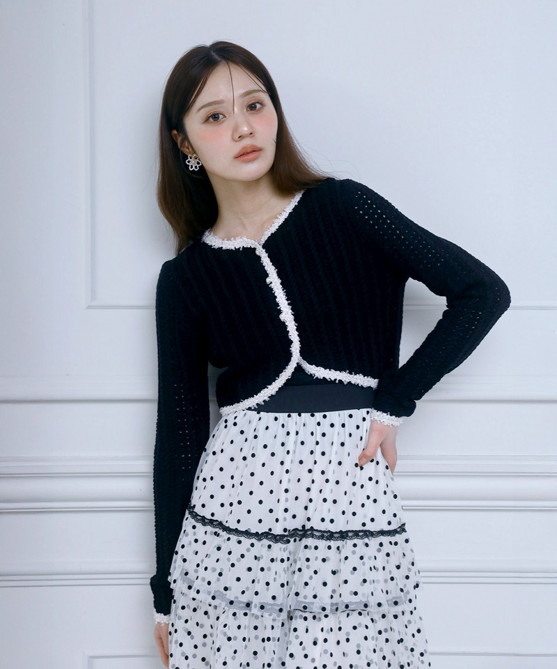 透かし編みが軽やかでフェミニンなニットカーディガン。