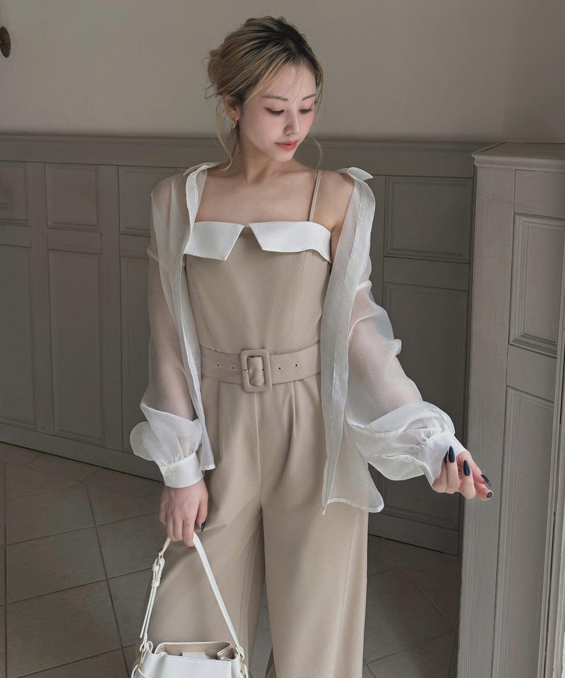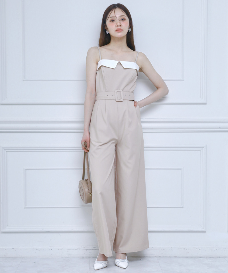 ヘルシーな肌見せや程良くワイドなパンツシルエットが女性らしさと大人の抜け感を演出してくれるベアオールインワン。