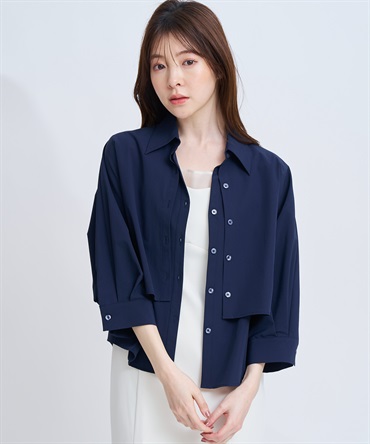 レイヤードしたようなデザインが1枚で完成する、表情豊かなシャツ。