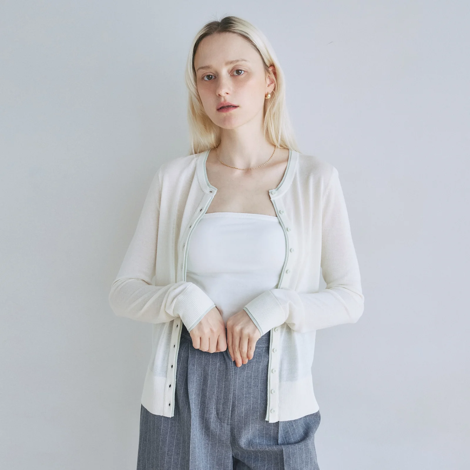繊細な透け感と、とろけるような肌触りが魅力のエアリータッチニットカーディガン。