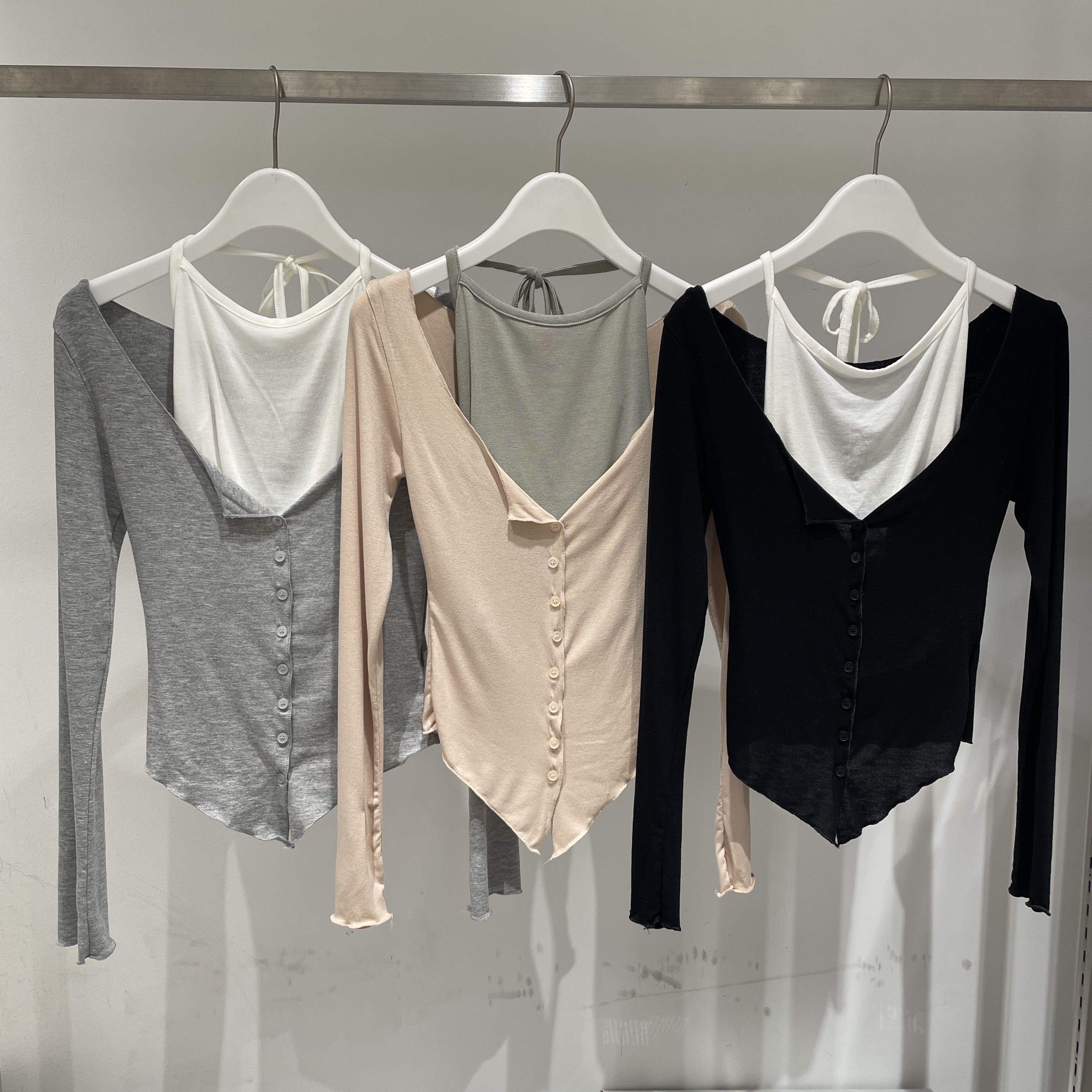 インナーとカーディガンのセットアイテムになっていて着るだけでおしゃれに✨