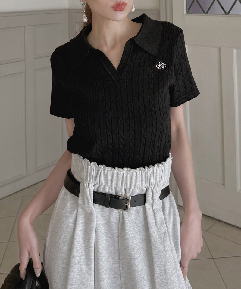 表情豊かなケーブルデザインが存在感を高める半袖ニットトップス。