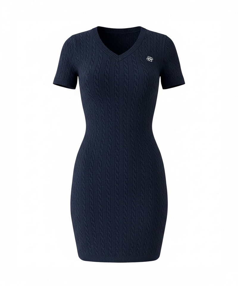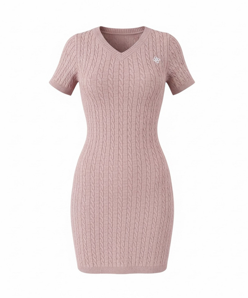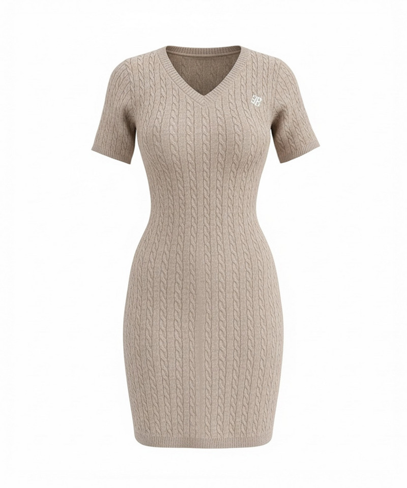 表情豊かなケーブルデザインが存在感を高める半袖ニットミニワンピース。