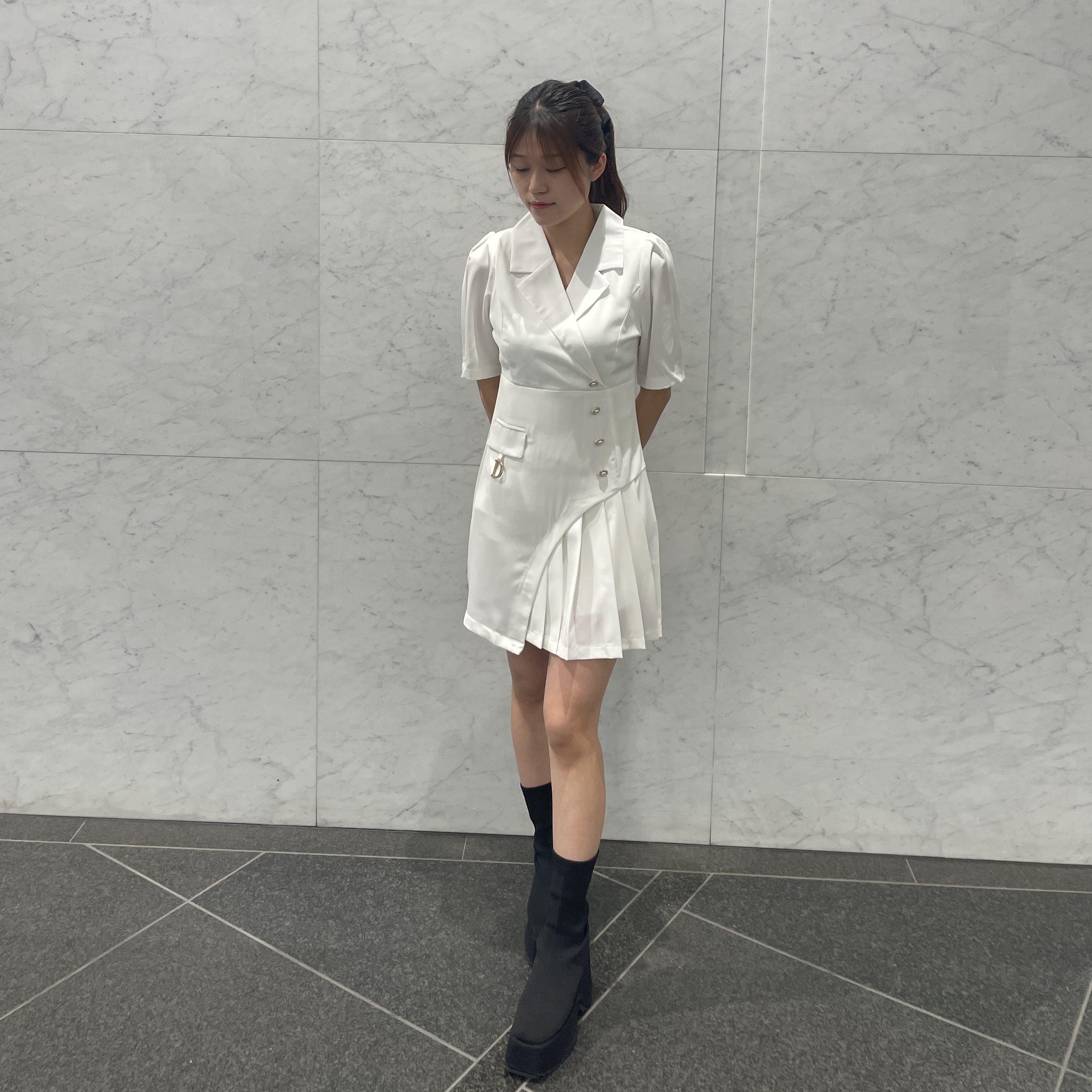 ○テーラードアシメプリーツミニワンピース
