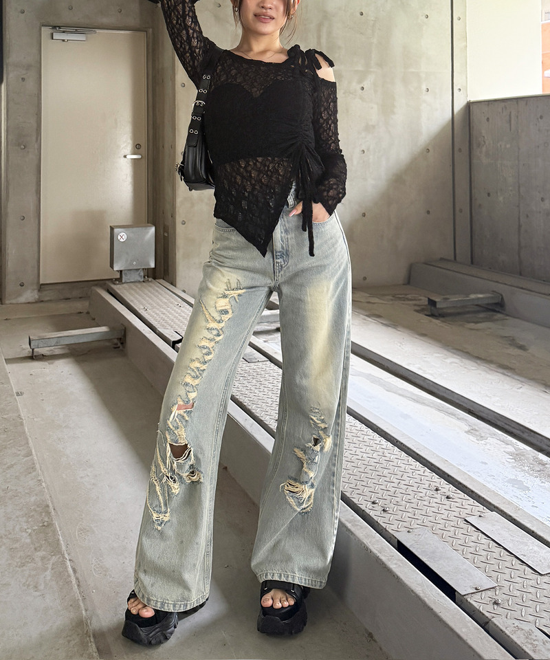 大人気のドロストリボントップスが、トレンド感たっぷりのレース素材で登場。