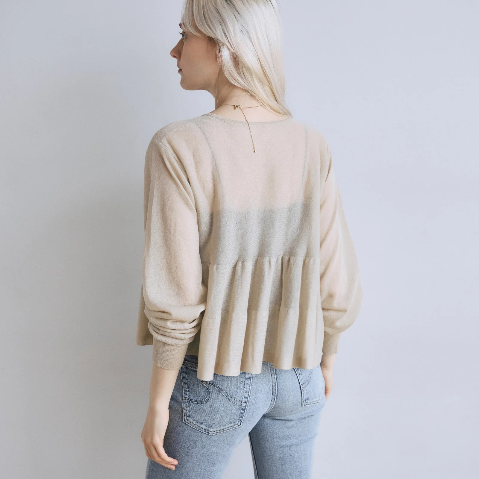 バストやアームホールに程良いゆとりを持たせることで、空気を含んだような軽やかなバランスに仕上げました。
