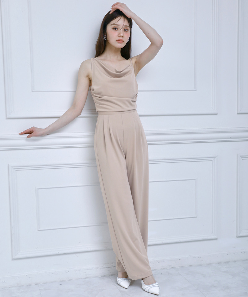 胸元のドレープ×アシンメトリーデザインが美しいラインを演出し、さりげなく女性らしさを引き立てます。