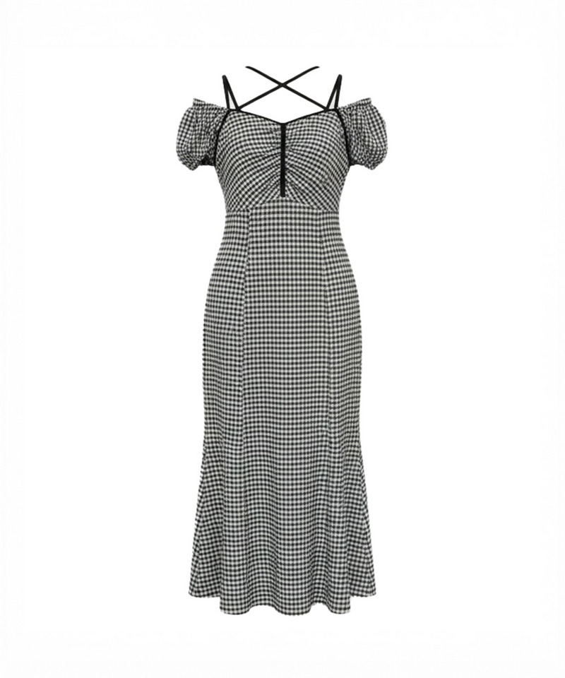 レイヤード風ギンガムチェックカットマーメイドワンピース