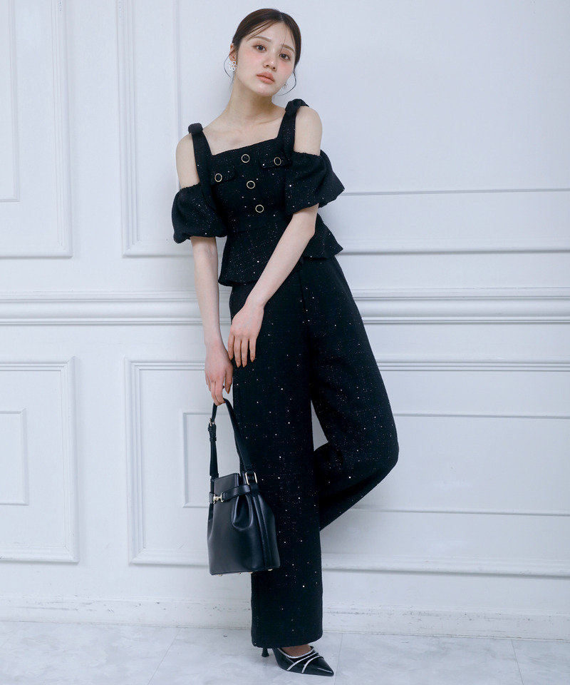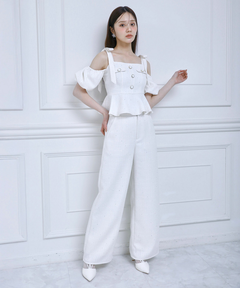 スパンコールツイードワイドパンツ