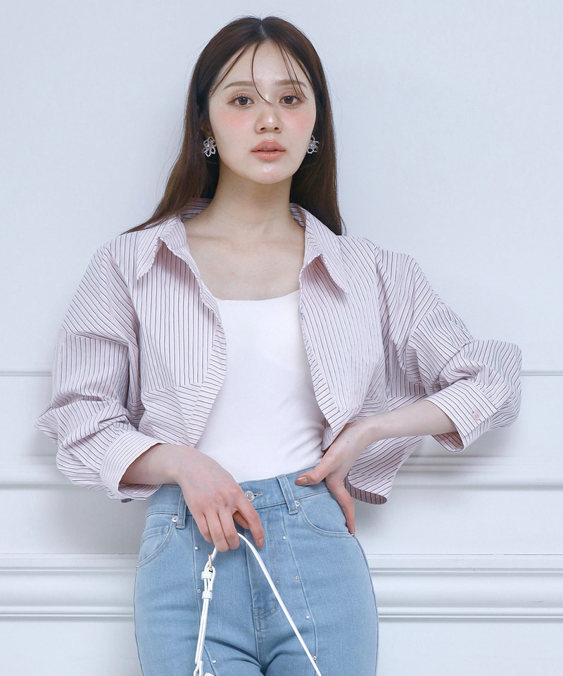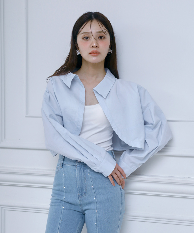 程良いルーズシルエットが魅力のボレロ風ショートシャツ。