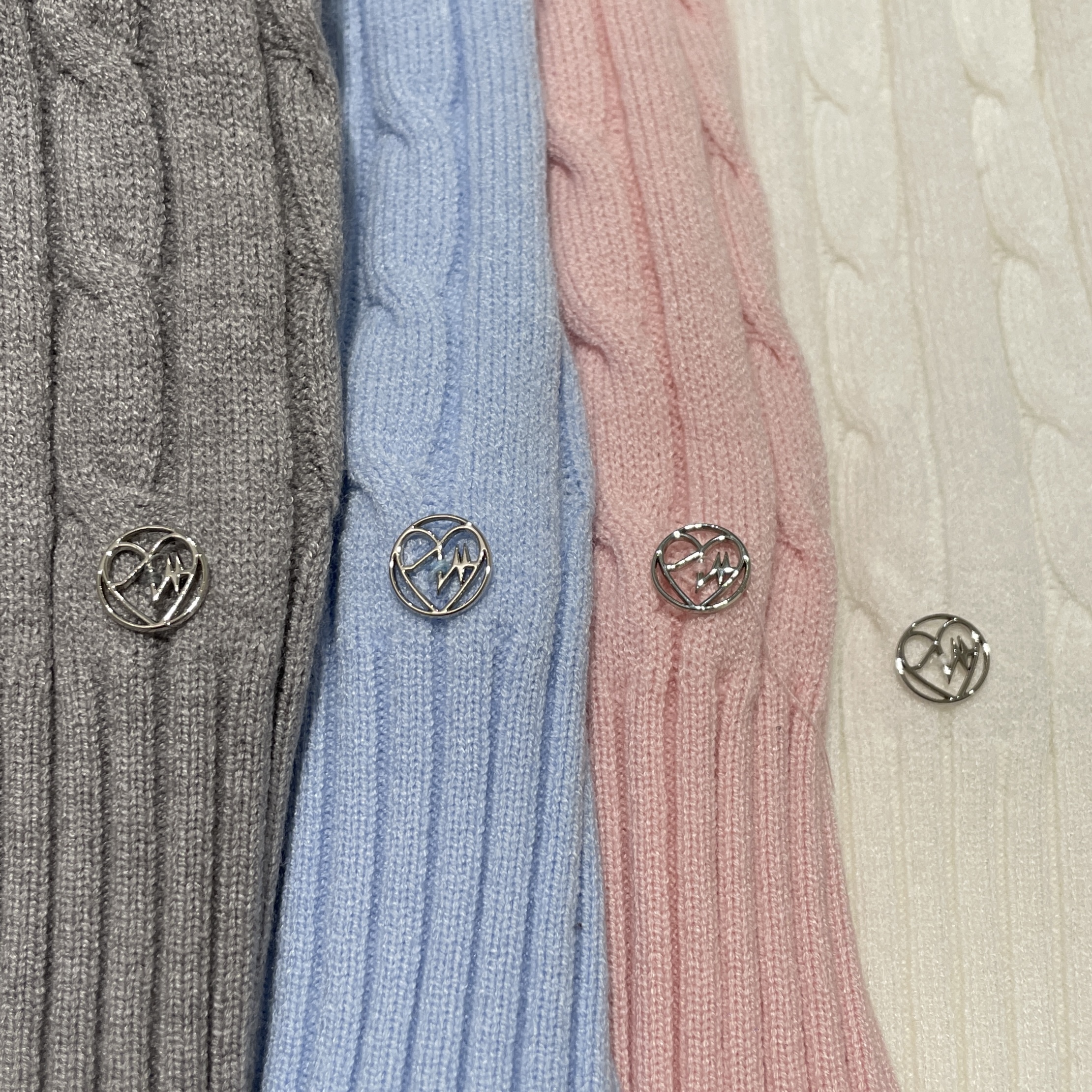 ケーブルニットの編み模様にハートのワンポイントがかわいい💞