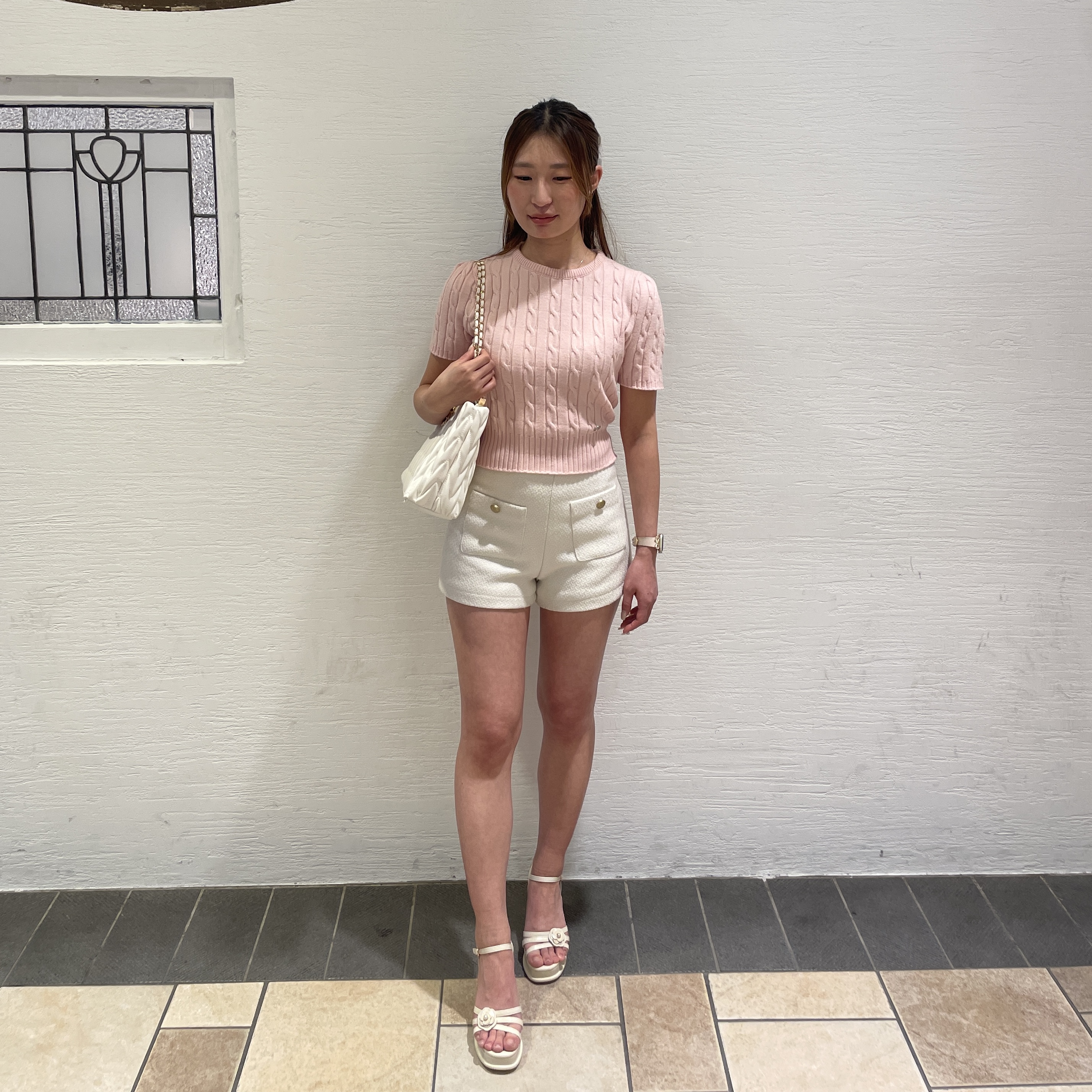 ◯ケーブル半袖ニット ¥3,480(tax in)