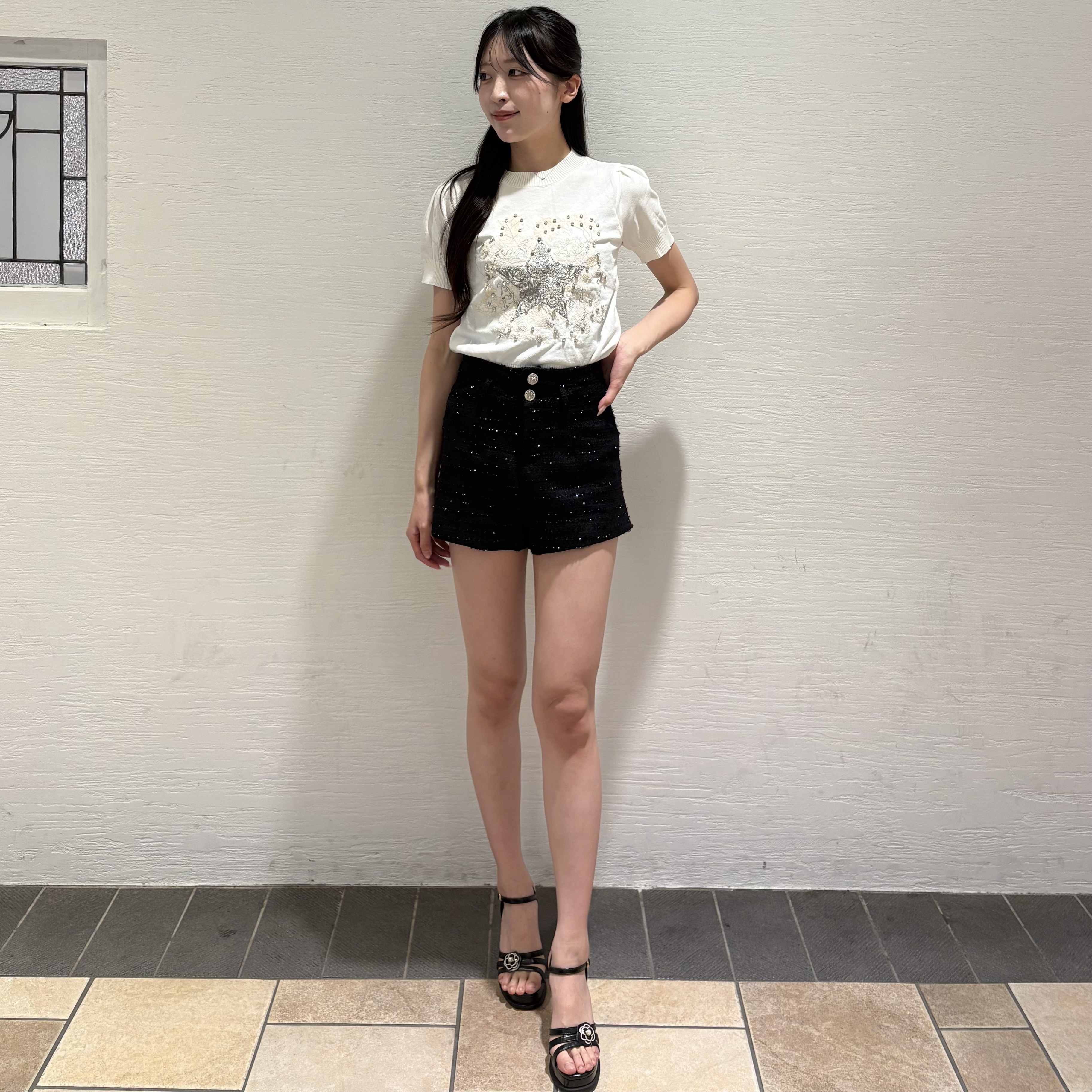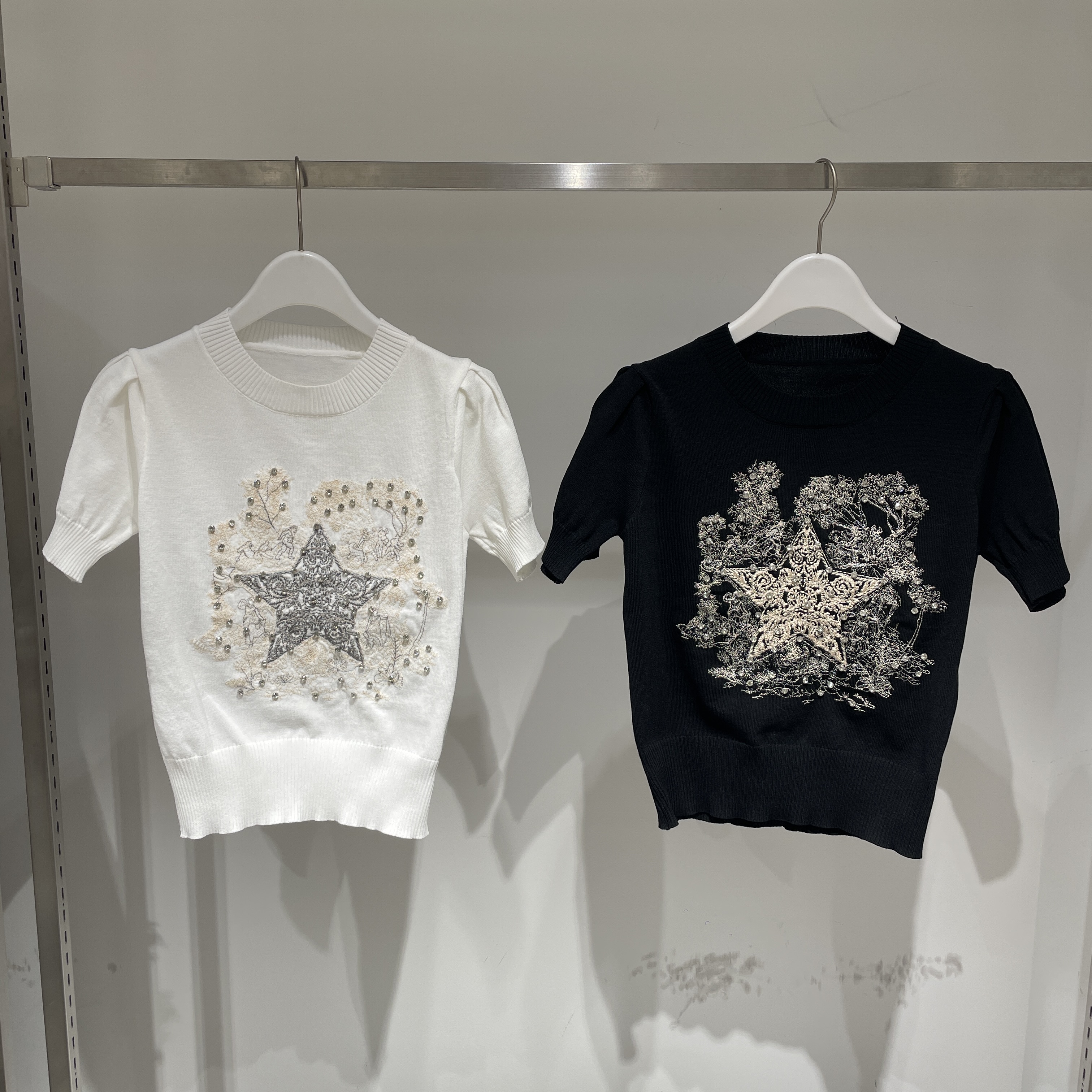 ◯スター刺繍ビジュー半袖ニット ¥4,980(tax in)