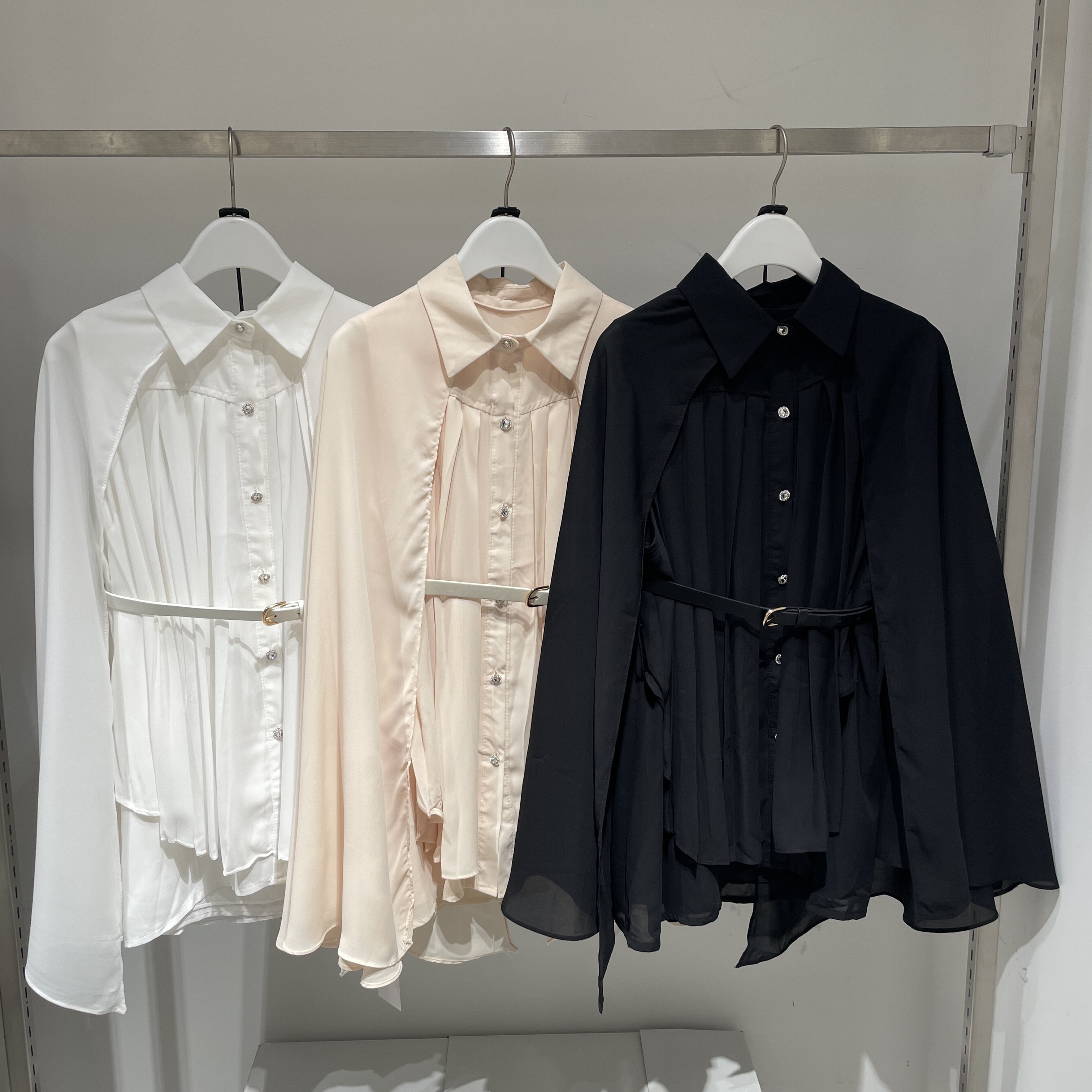 ○ビジューボタンプリーツケープブラウス ¥6,980(tax in)