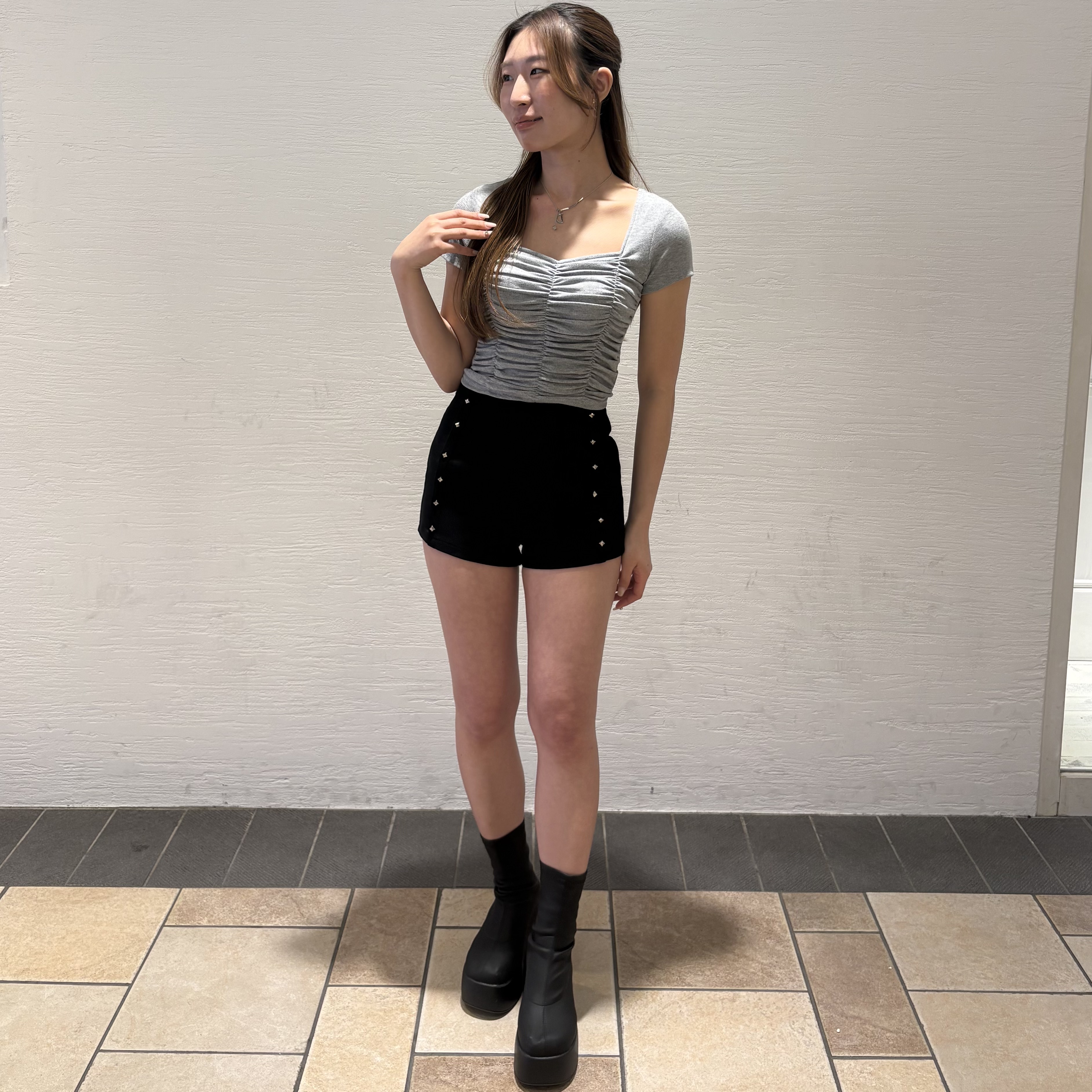◯シャーリング半袖Tシャツ ¥3,980(tax in)
