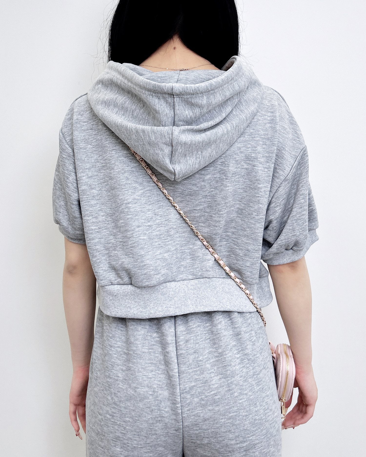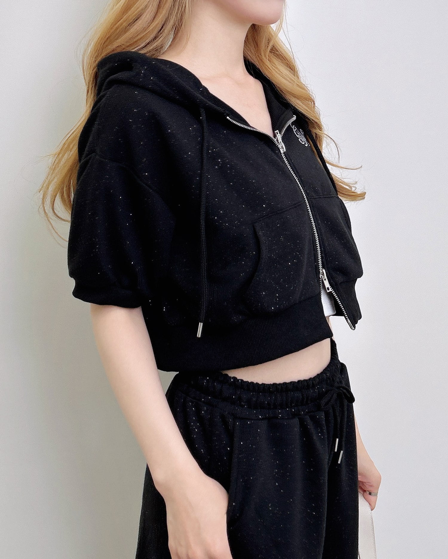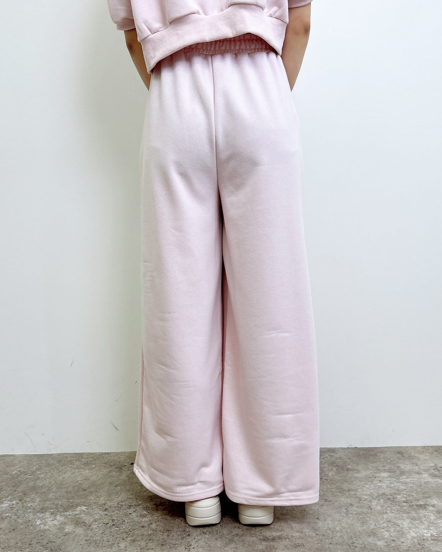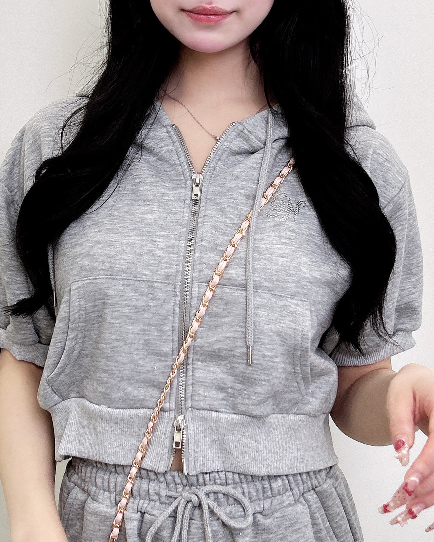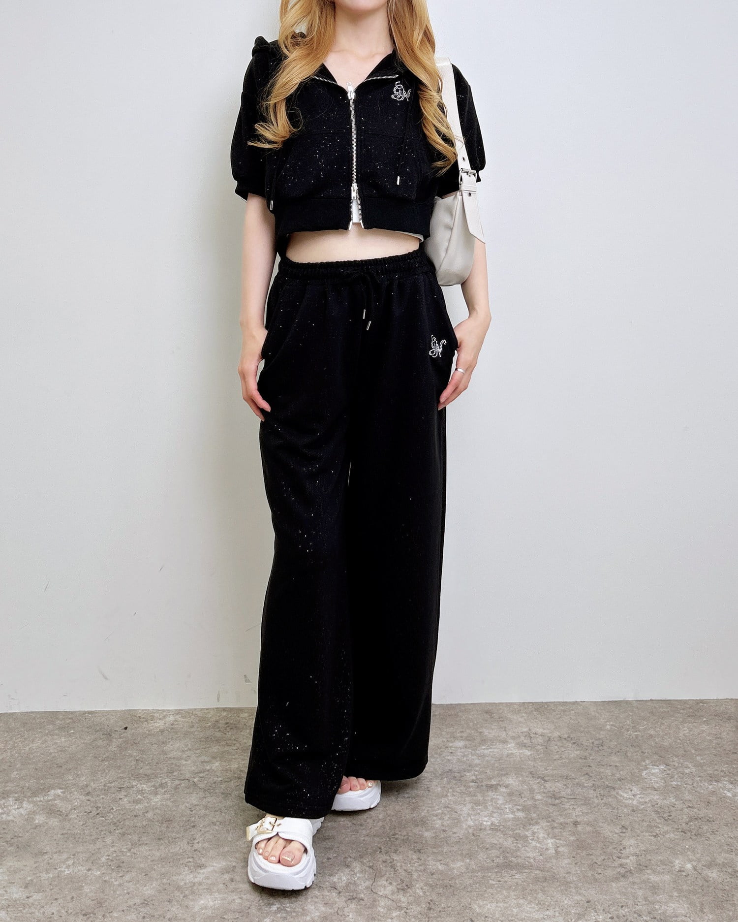 ショート丈のジップパーカーとウエストゴムのワイドパンツのセットアップです>𖥦<