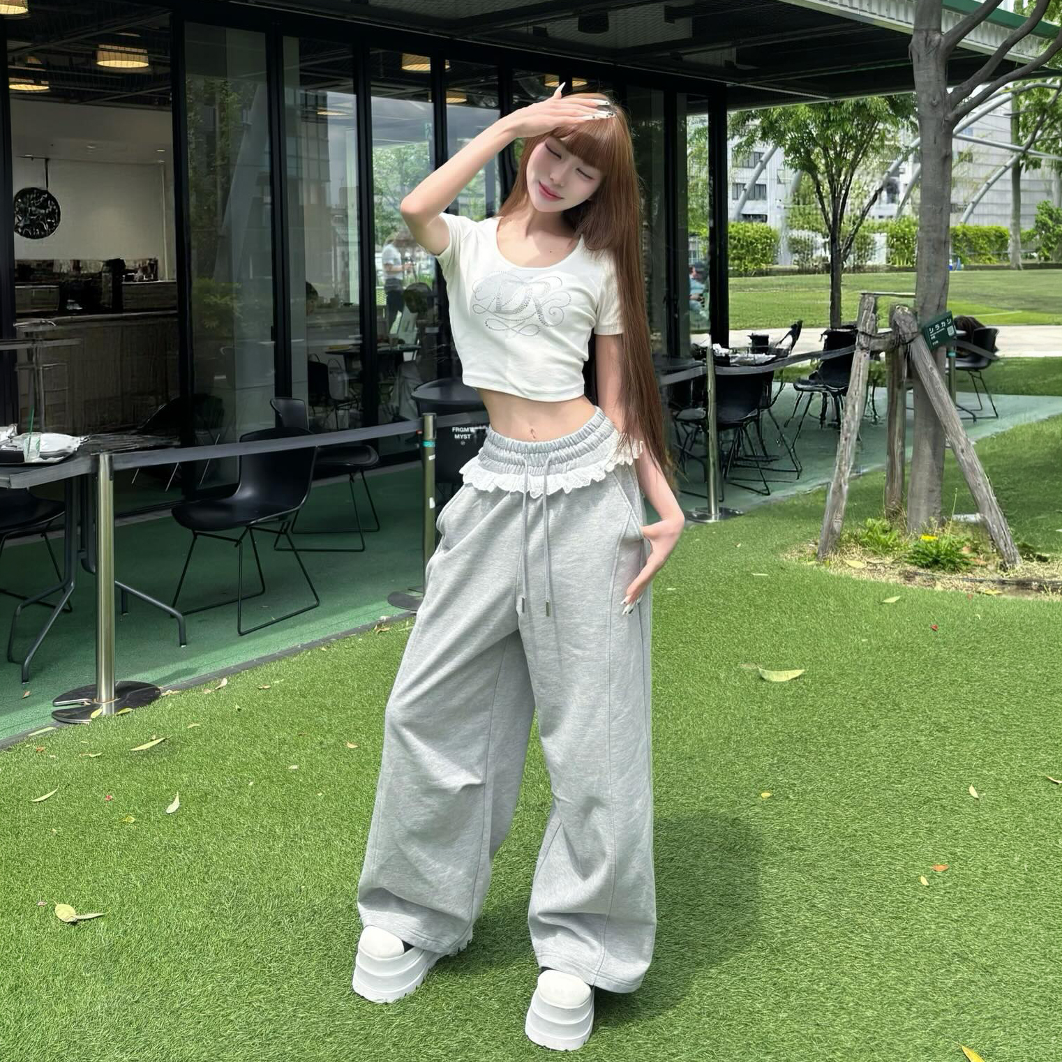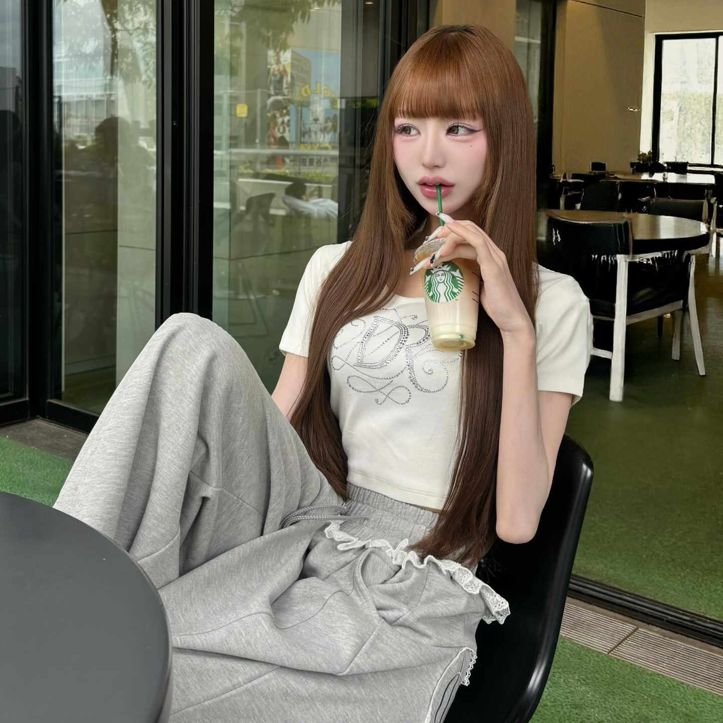 ビジューで描いたバロックDRロゴがきらっと輝き、シンプルなのに一気に主役級の存在感に✨ コンパクトなシルエットで自然とスタイルアップし、着るだけでバランスよく決まる一枚💎 デニムでラフにもミニでガーリーにも、どんなスタイリングも華やかに仕上げてくれる万能Tシャツ🎀