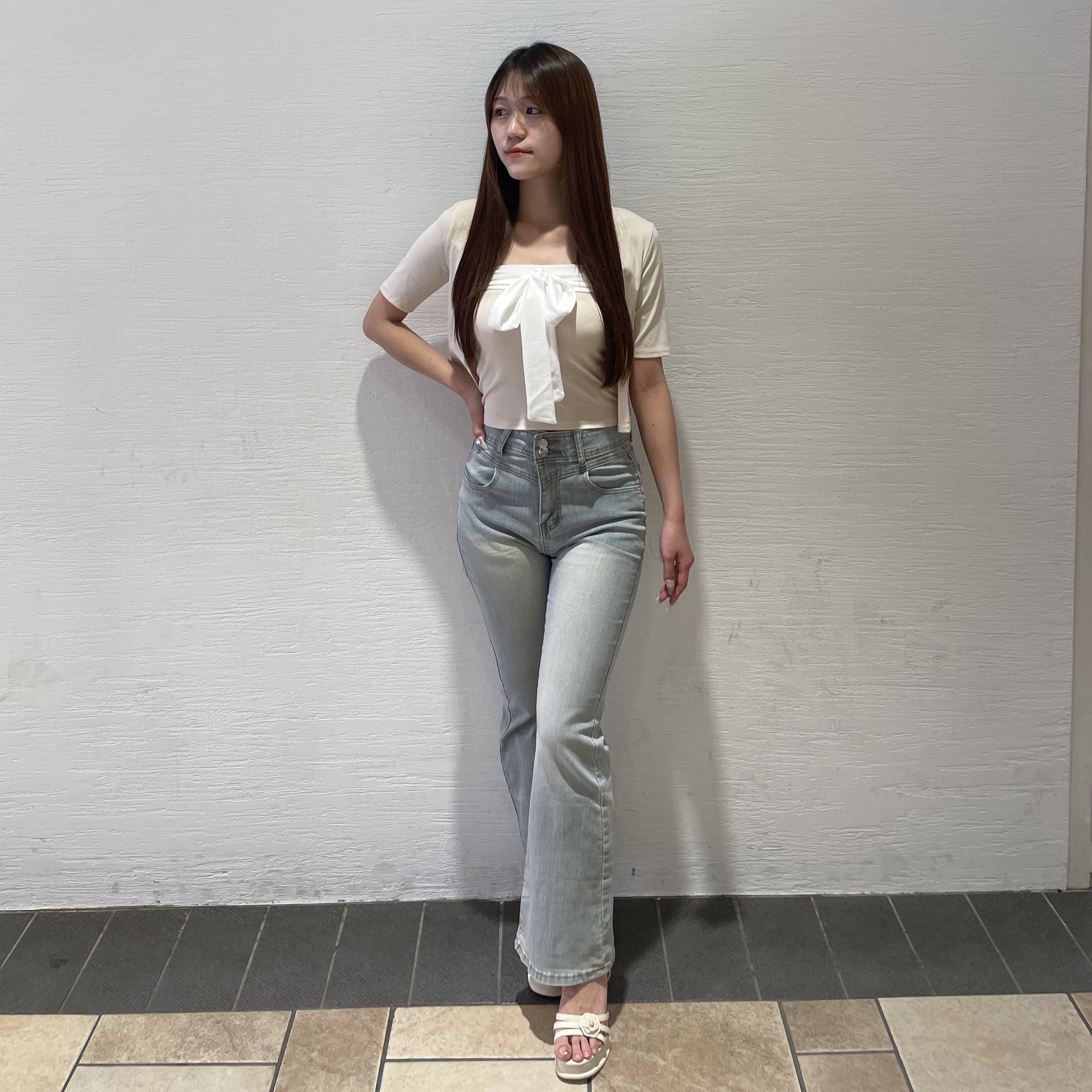 ○リボンチューブトップ&半袖カーディガンSET ¥5,980(tax in)