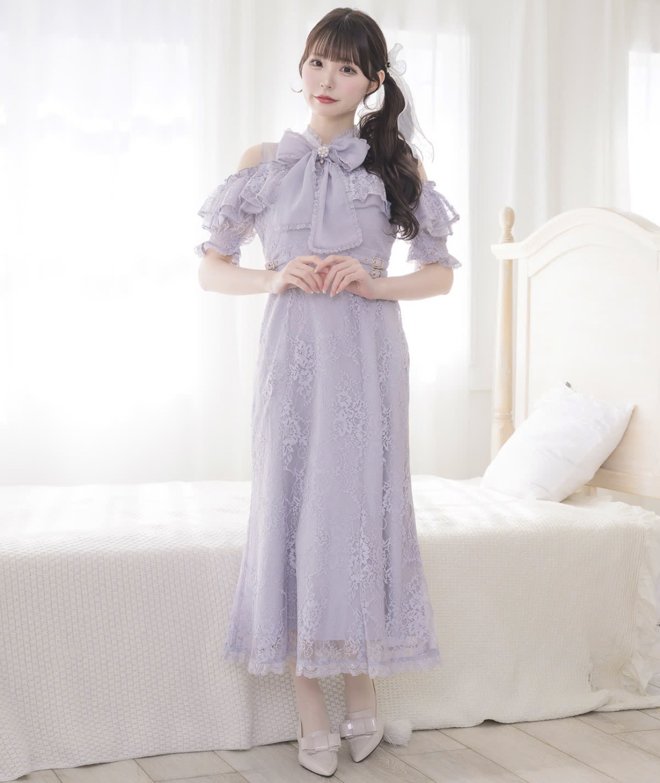 肩開き総レースワンピ...