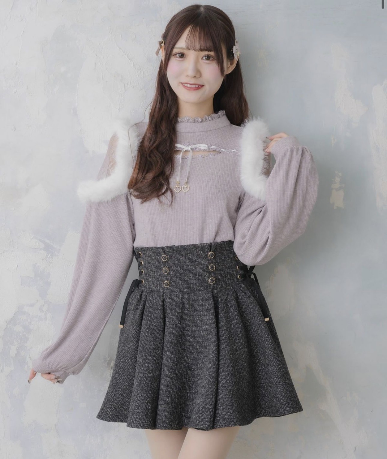 レースアップツイード...