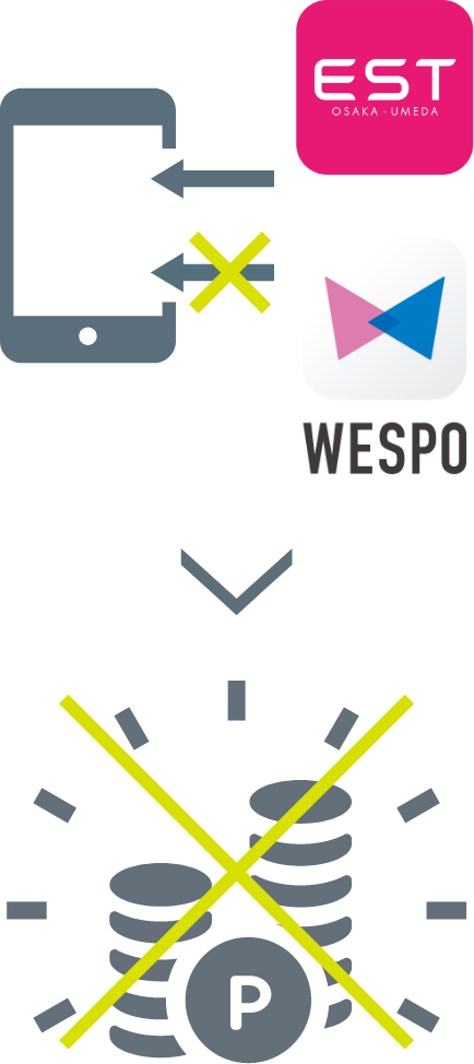 期間中にエストアプリ又はカードの会員情報を登録したが、WESPOアプリのダウンロードをしなかった場合、ポイントは付与されませんので注意!