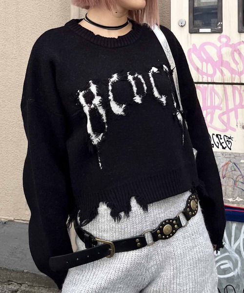 ロゴダメージニットプ...