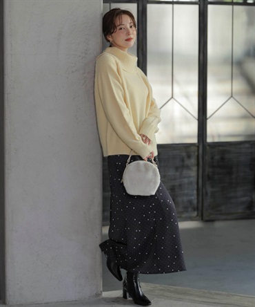 ビジュー刺繍ニット