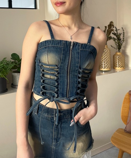 レースアップデニムビ...