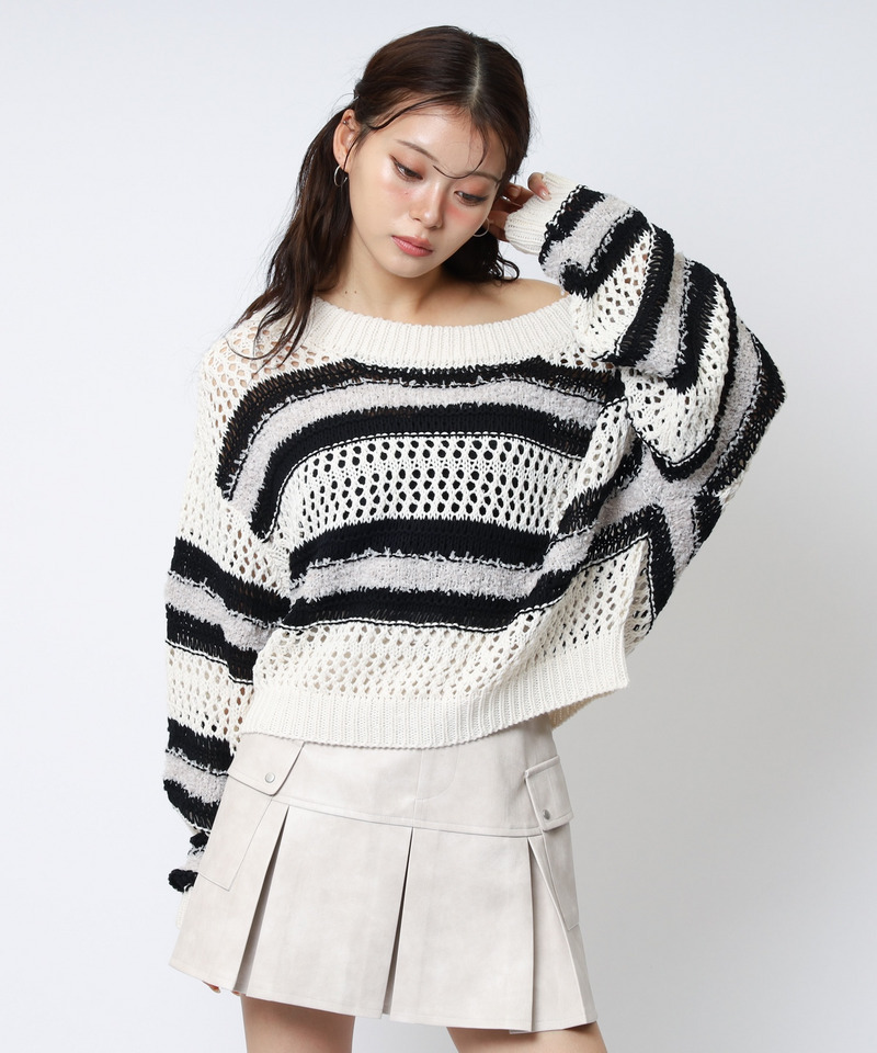 ボーダー透かし編みシ...