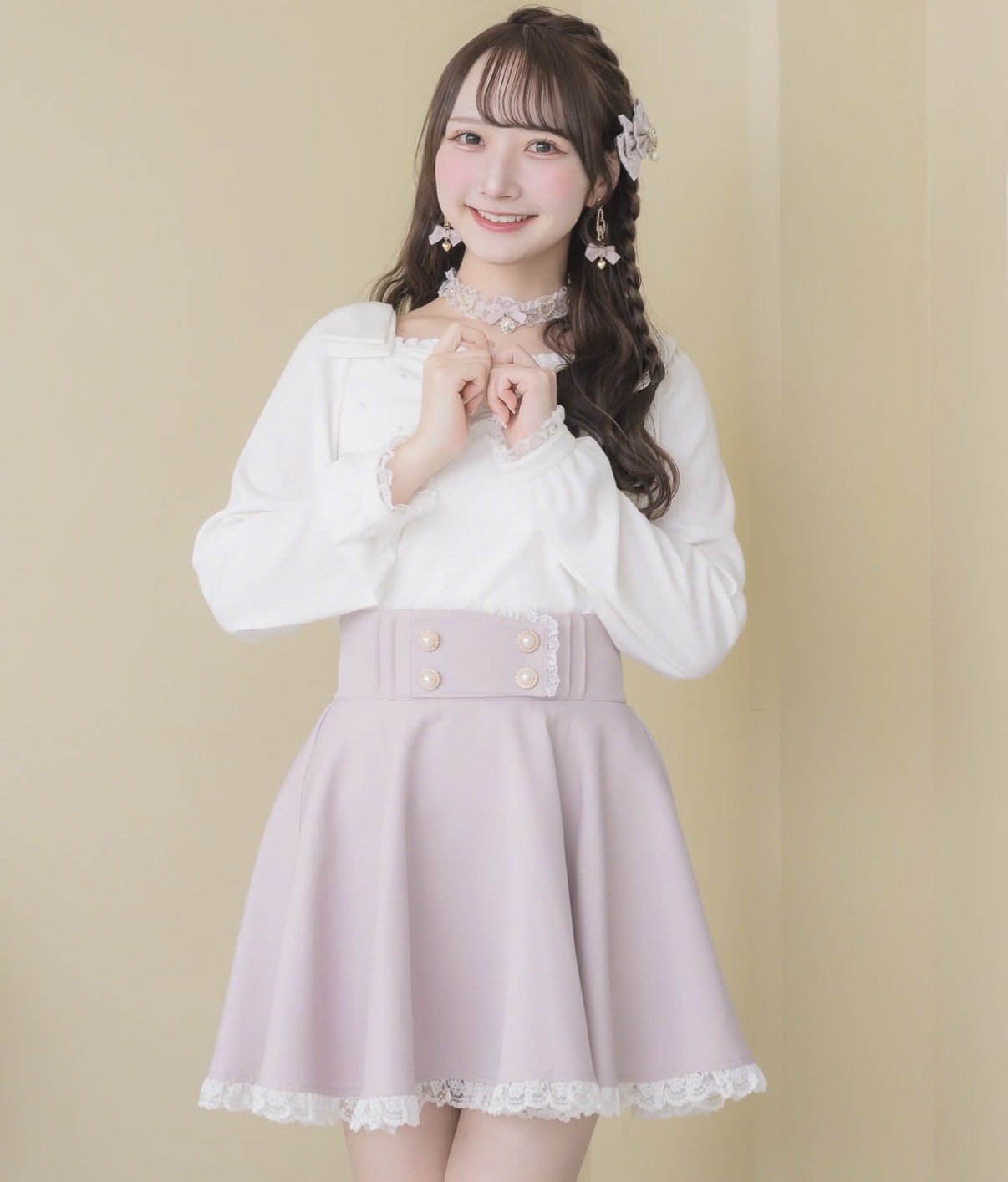 パール釦フレアスカー...