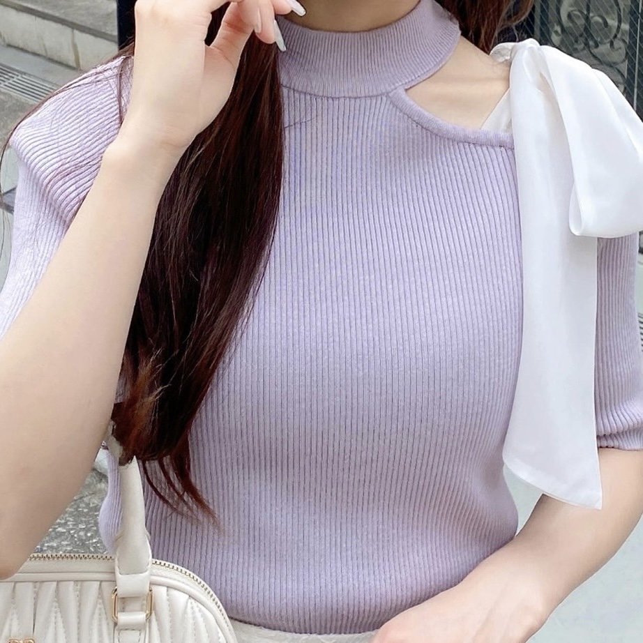 900392 ワンショルシアーリボン半袖ニット