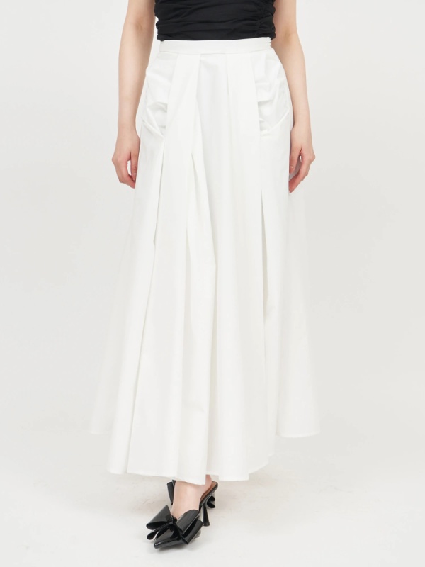 たっぷりとタックを入れた立体感のあるシルエットが魅力のボリュームスカート。