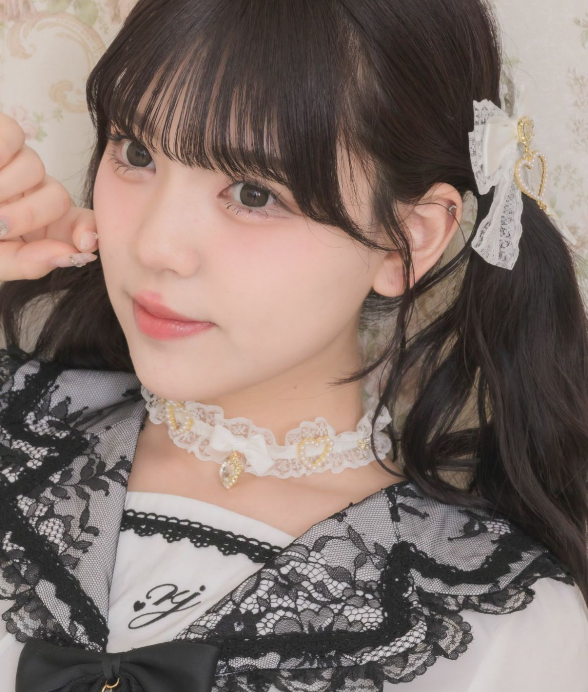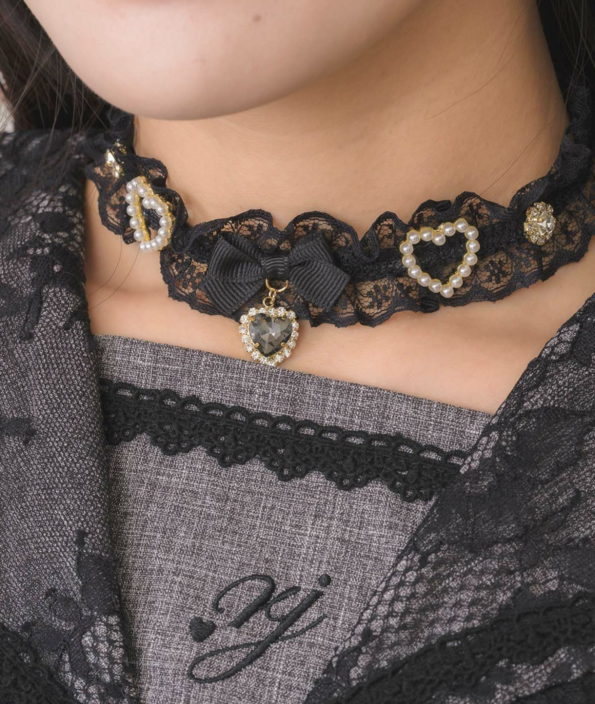 顔周りを華やかに演出してくれるレースチョーカー。透け感のあるレースで抜け感も♪メインのリボンにはキラッと可愛いハートのビジューが付いており、サイドの装飾もゴージャス感UPして煌びやかに◎デコルテがざっくり開いたトップスやミニスカートとの相性抜群!