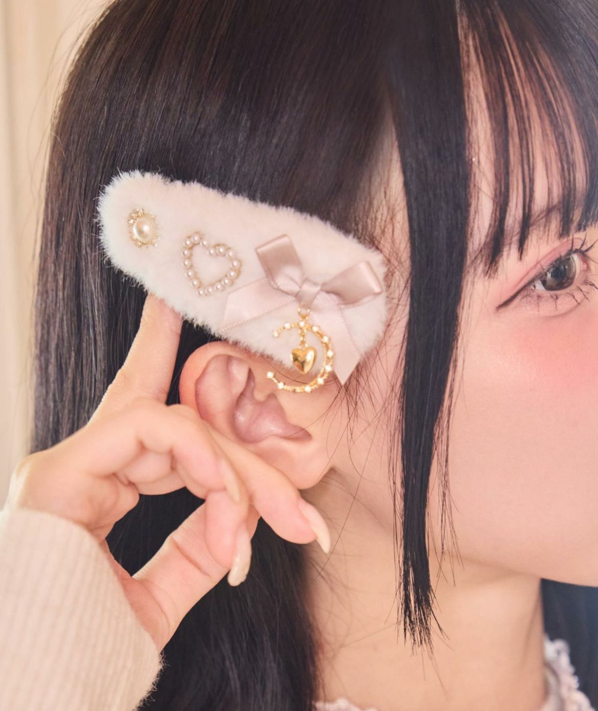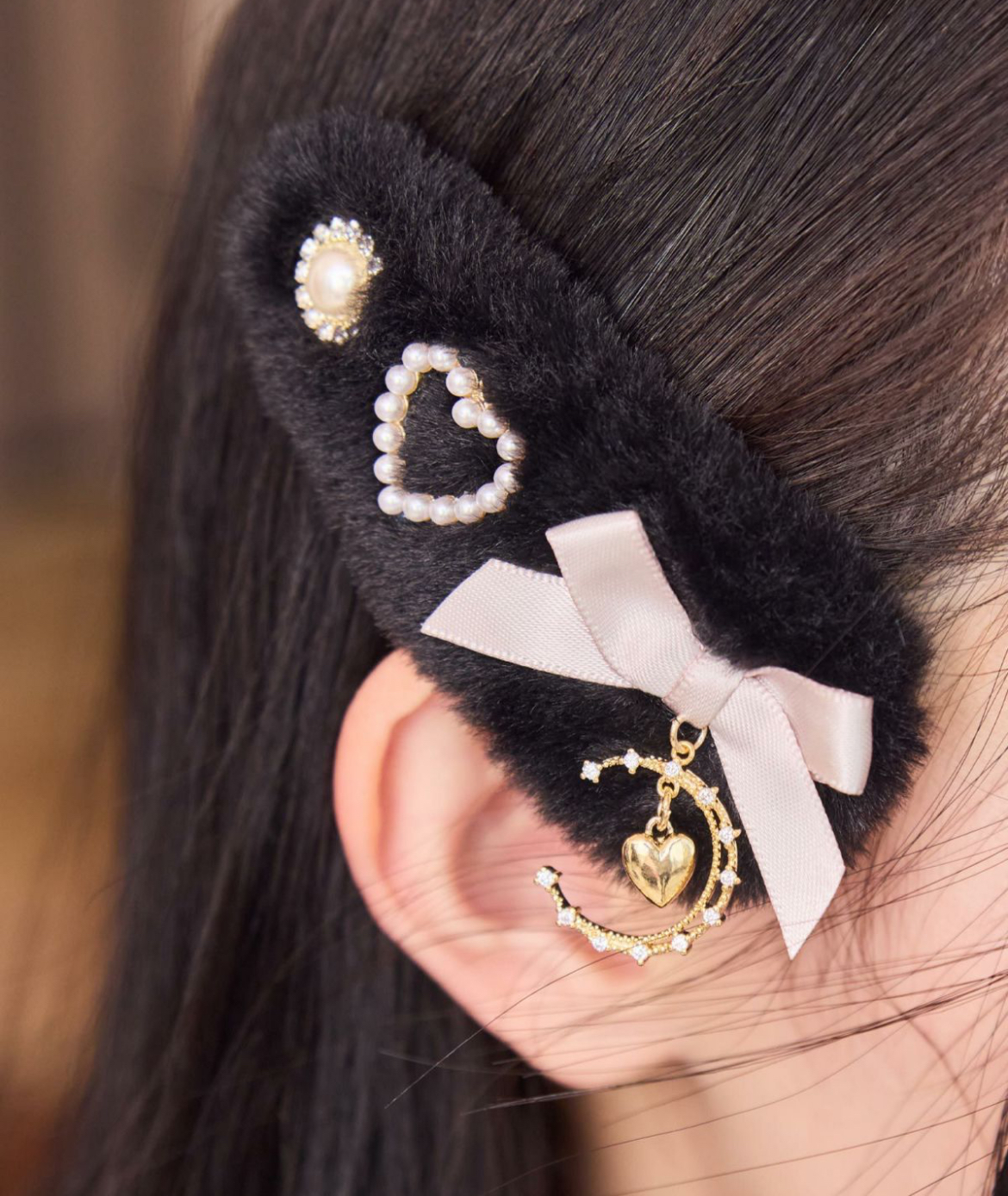 魅惑的なムーンがデコラティブなメインのアクセント♡ふわふわのファーがシーズンを先取りし、レディライクな装飾がオシャレ上級者に導きます。装着も簡単で、大きめなので1個で十分にアピール力があるのも嬉しいポイント♪