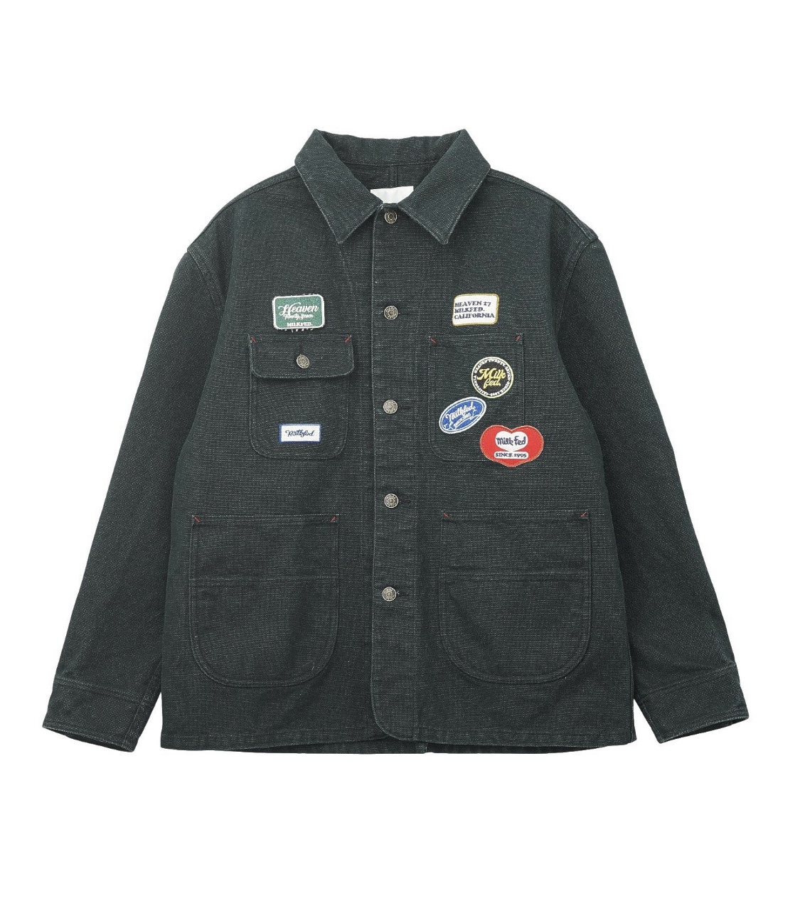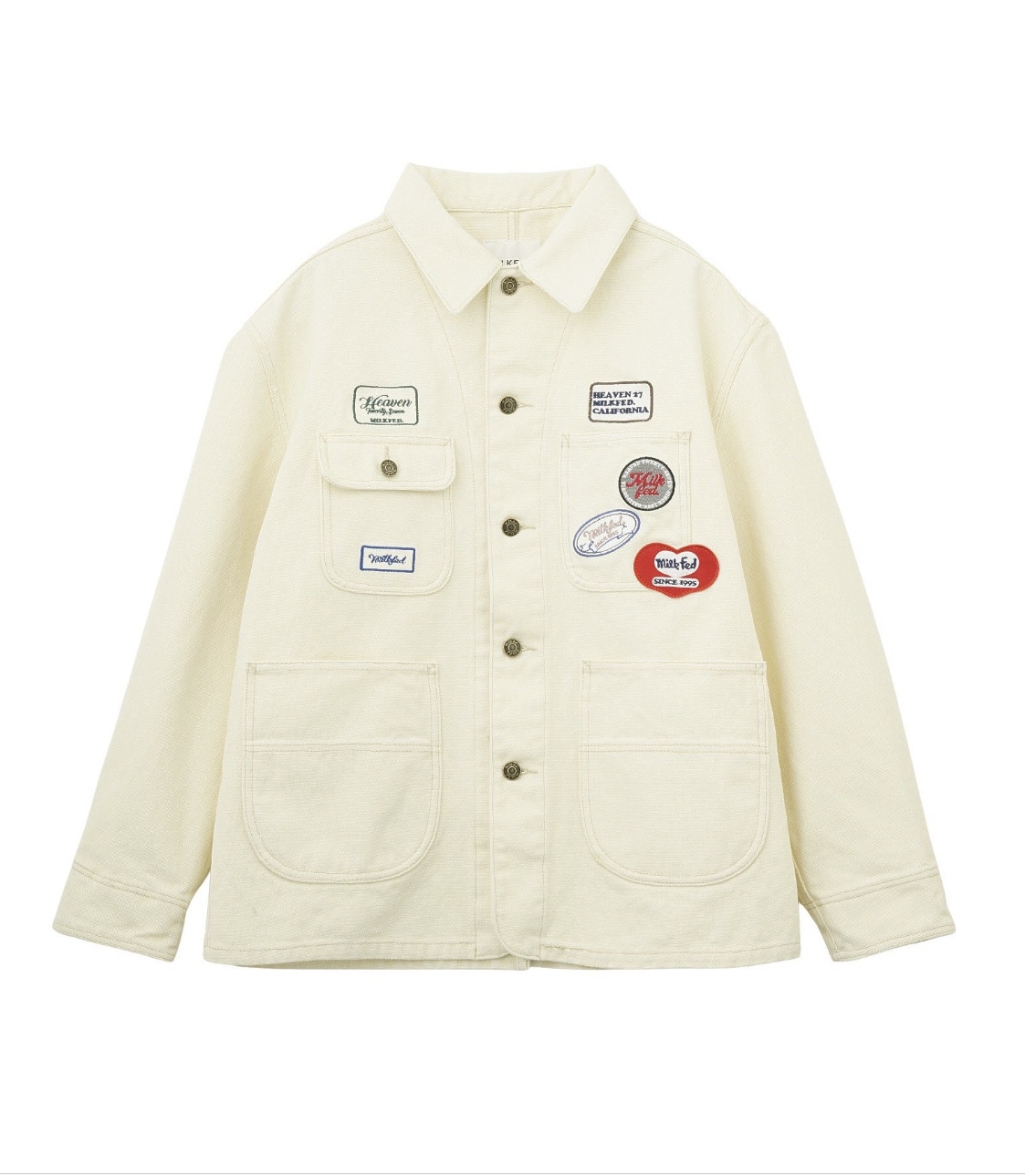 散りばめられたワッペンもMFならではのデザインで、生地は柔らかく色落ち加工になっているので