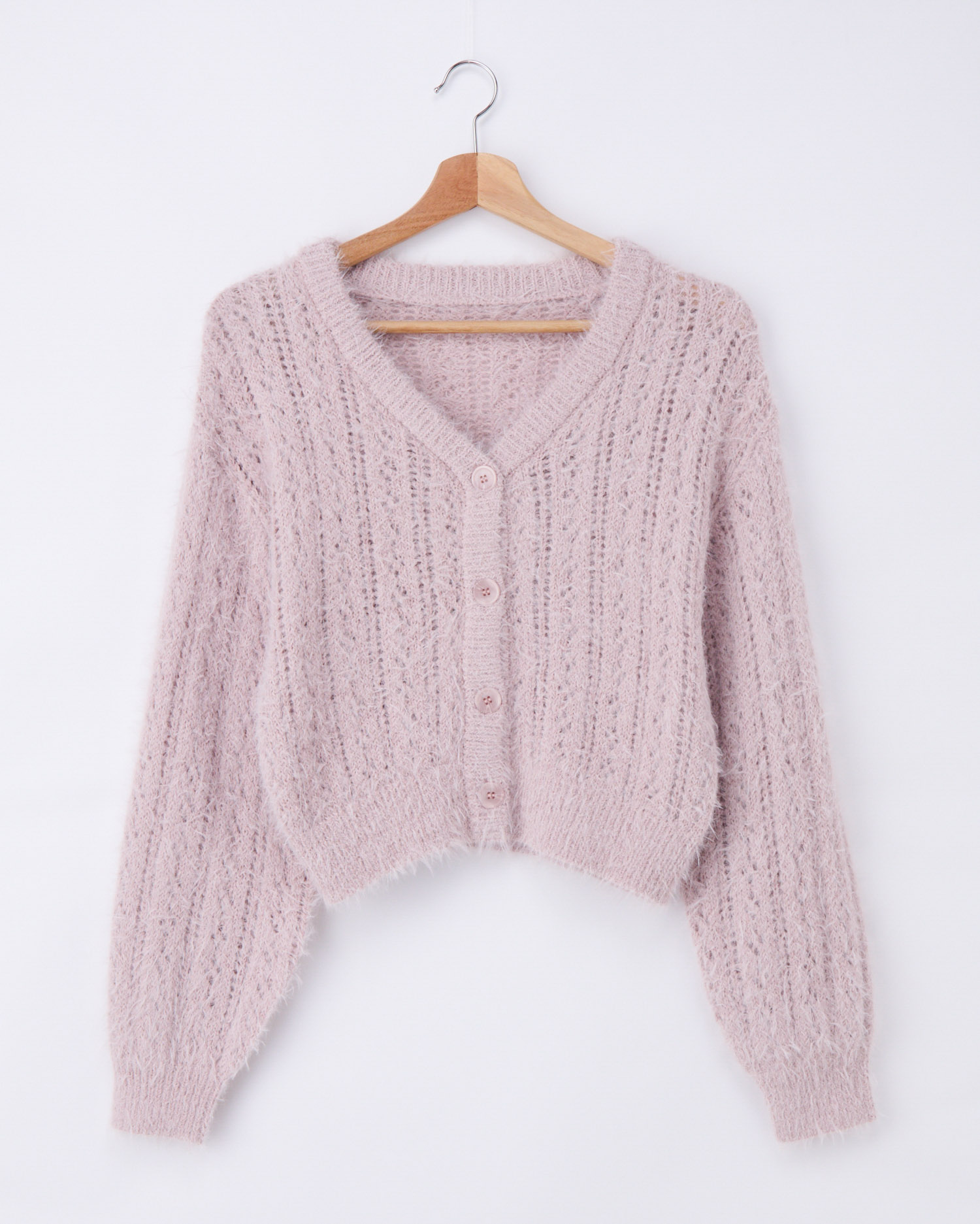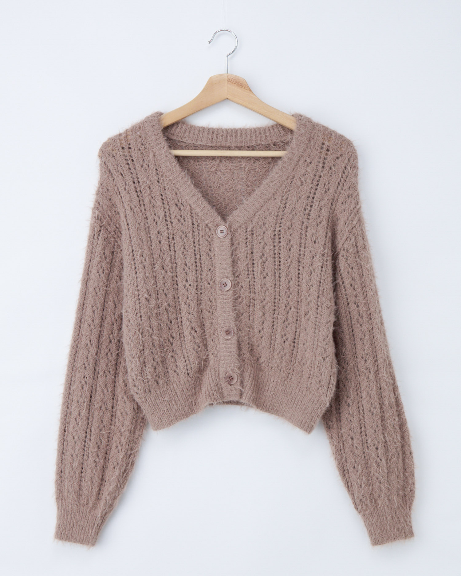 1254-600158 フェザーヤーン透かし柄ニットカーディガン