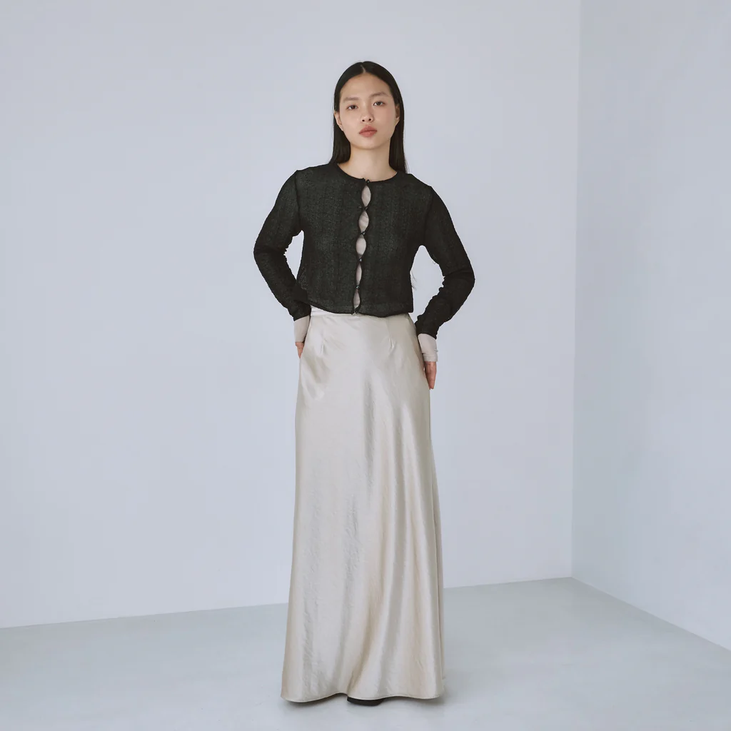 体にフィットするタイトシルエット。着丈を短めに設定することで、バランスの良いコンパクトなシルエットが完成しました。