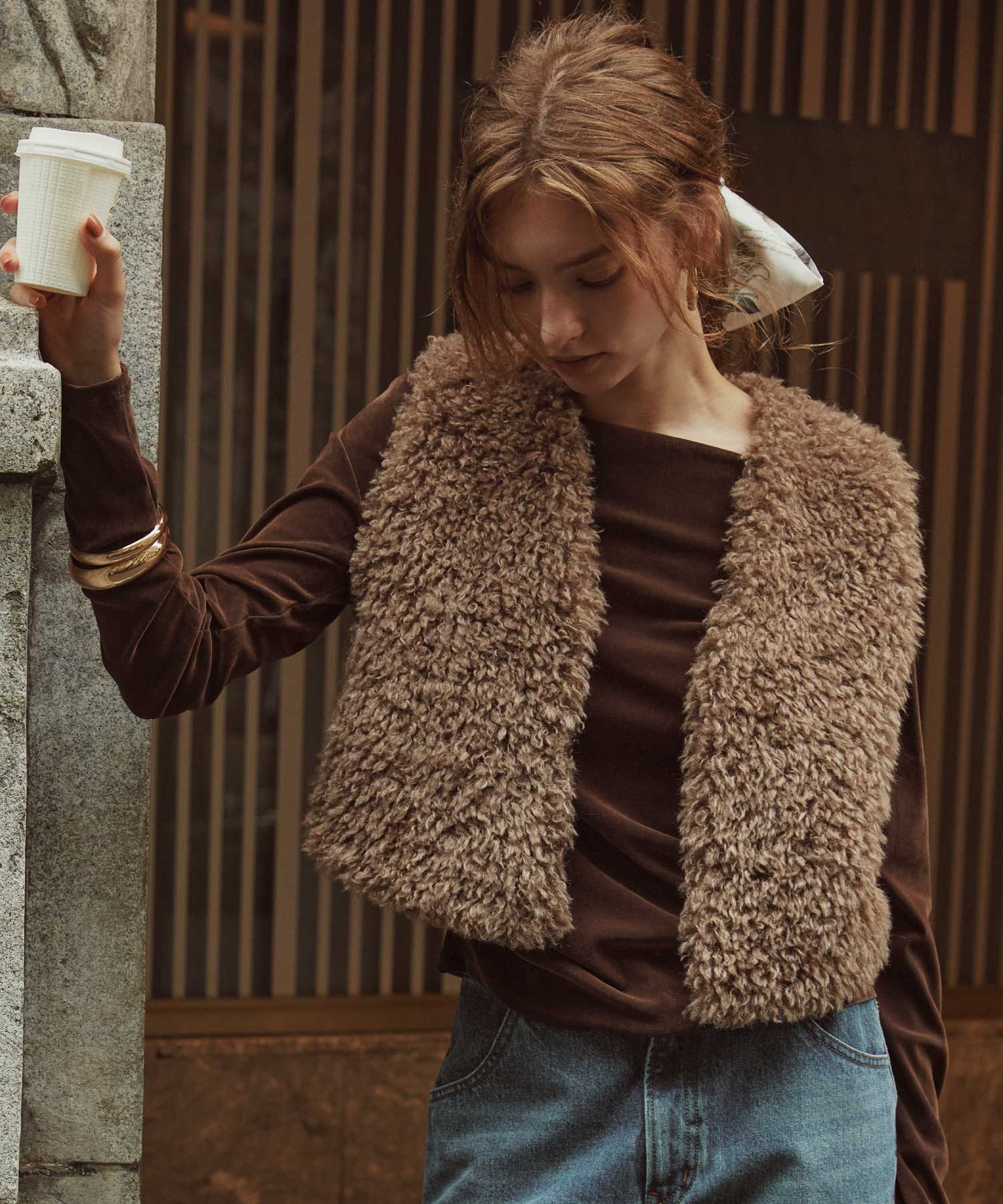 秋冬にかけて引き続きトレンドのファーを、羽織りで取り入れて季節感を先取りできるアイテム。