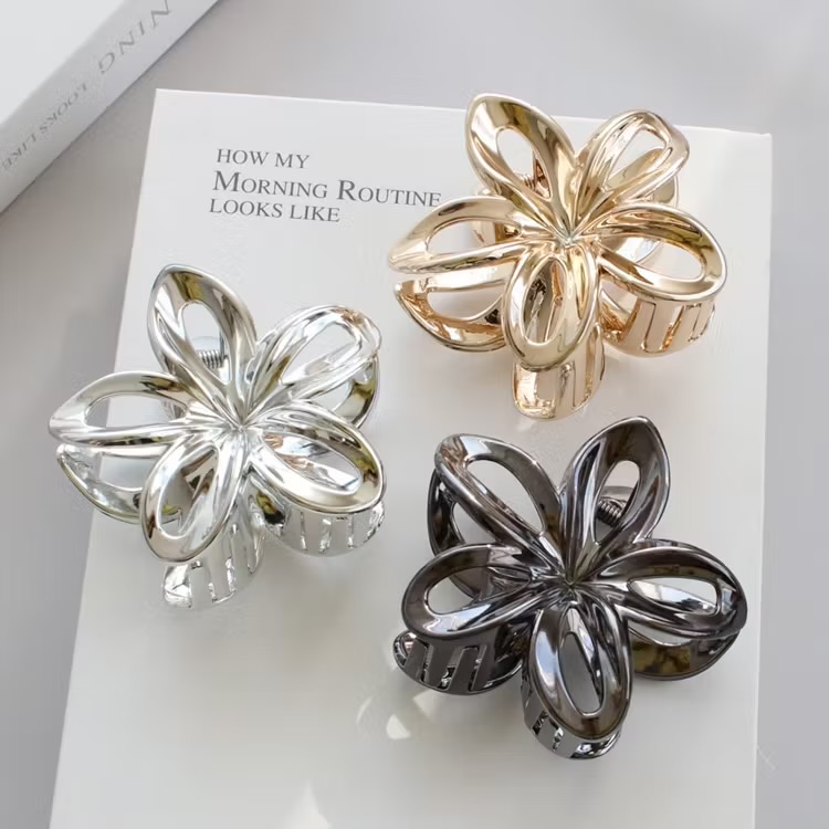 メタル素材の大きい花をモチーフにしたバンスクリップです♡