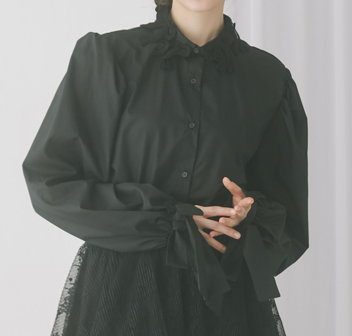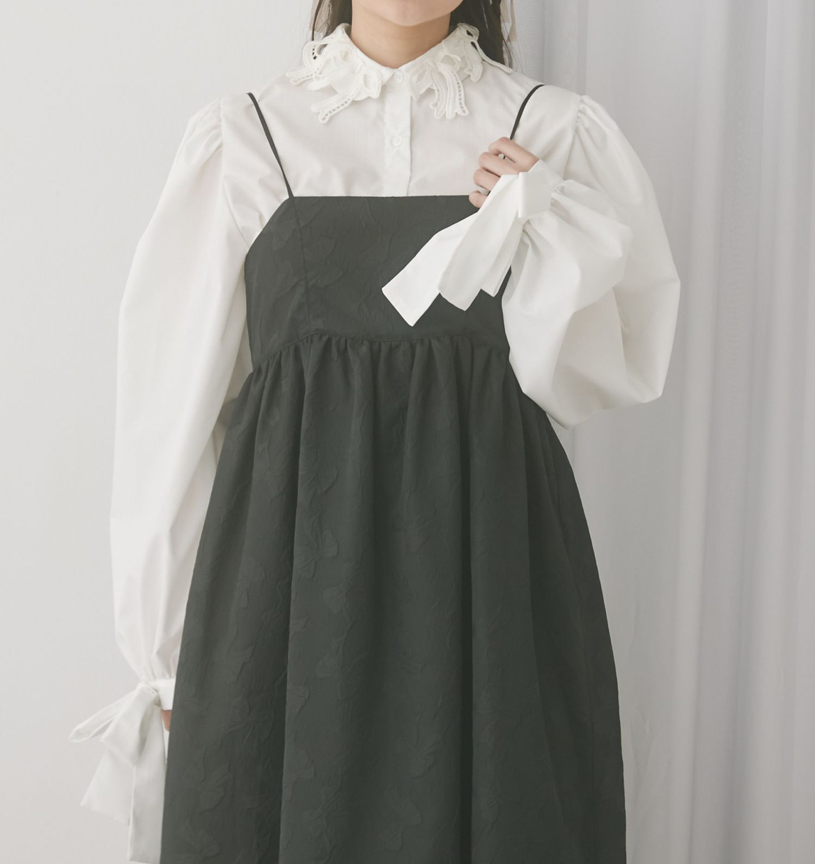 ワンピースのレイヤードはもちろん、ニットを合わせて襟のリボンと袖口のリボンを出すスタイリングがおすすめです◯
