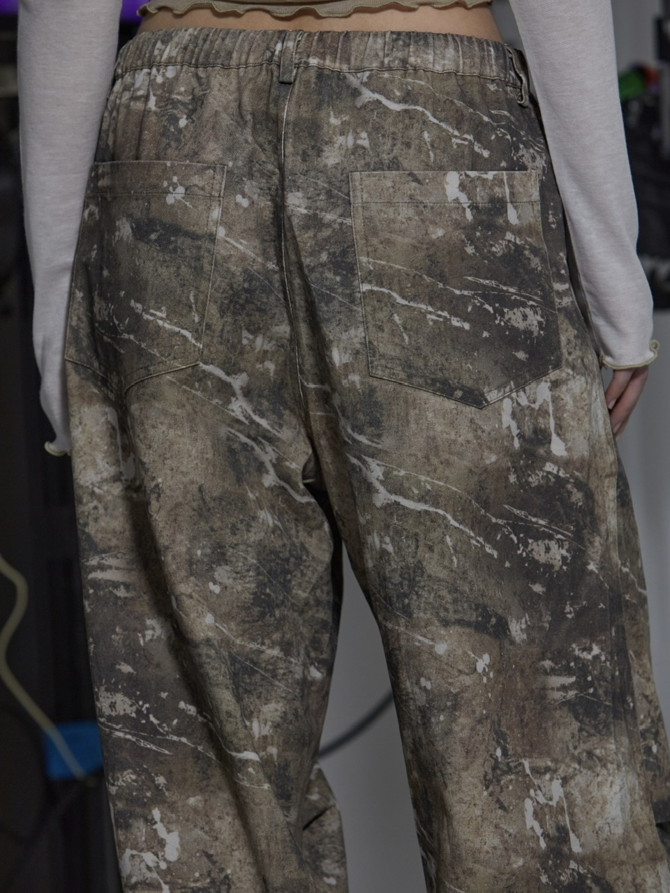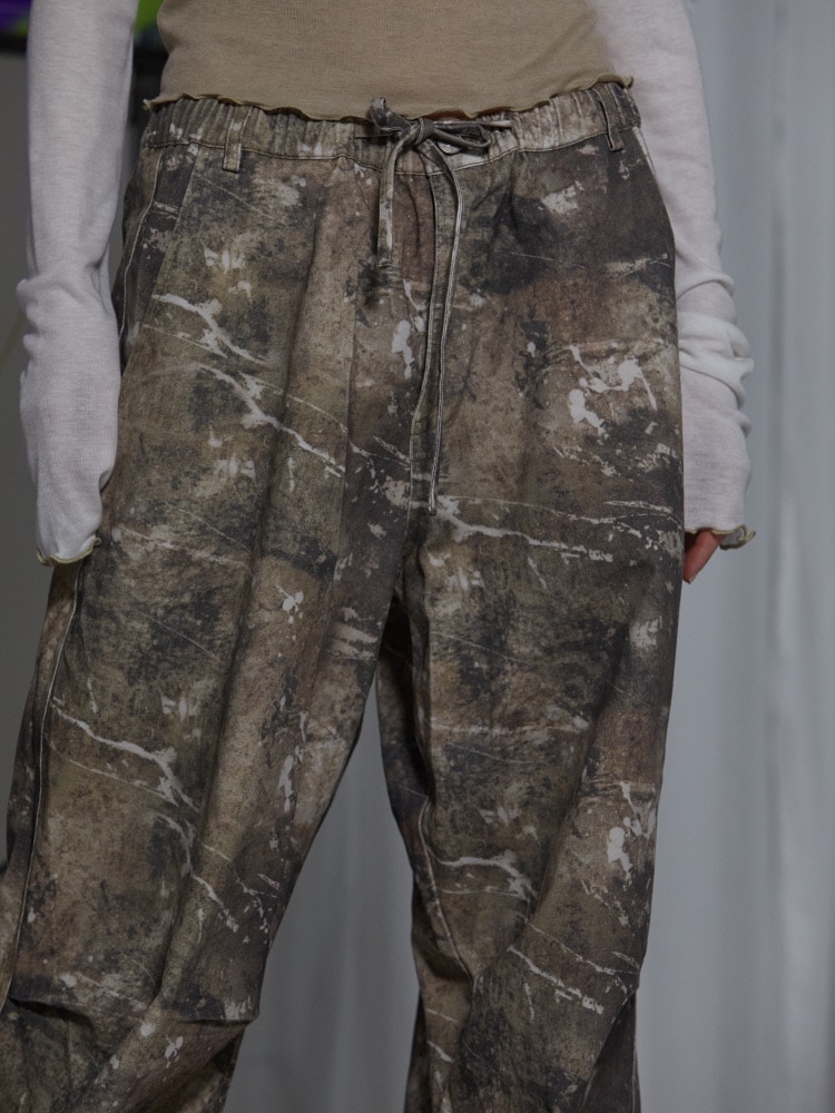 裾が絞れるようになっており、絞ることによって足元で溜めて履いていただくことが可能です