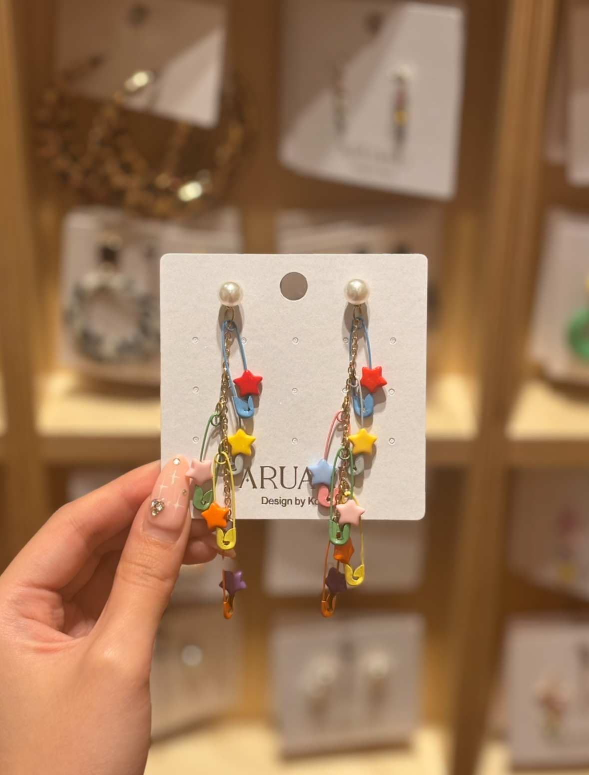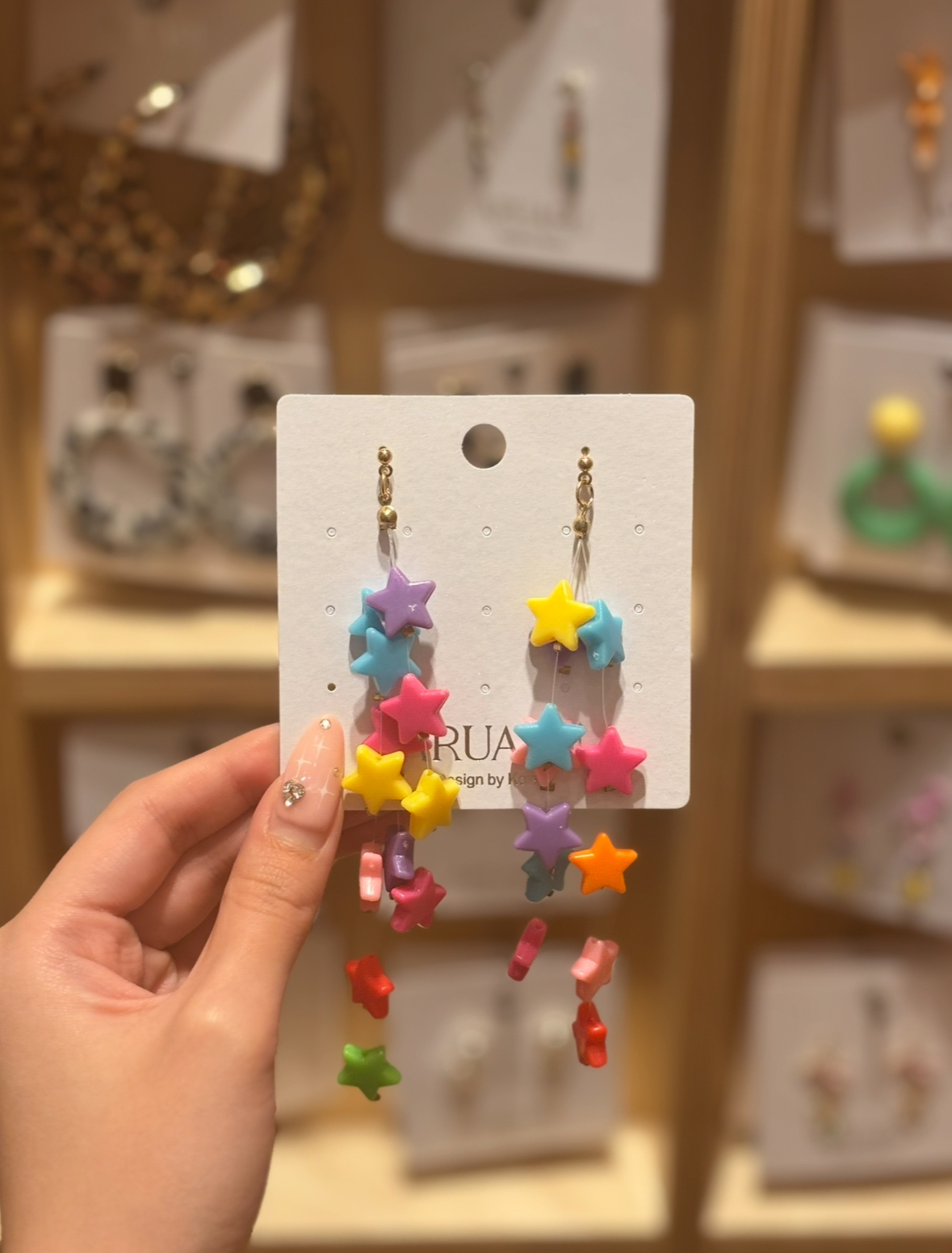 歩くたびに揺れるカラフルな星モチーフが、耳元をポップに彩ります✨