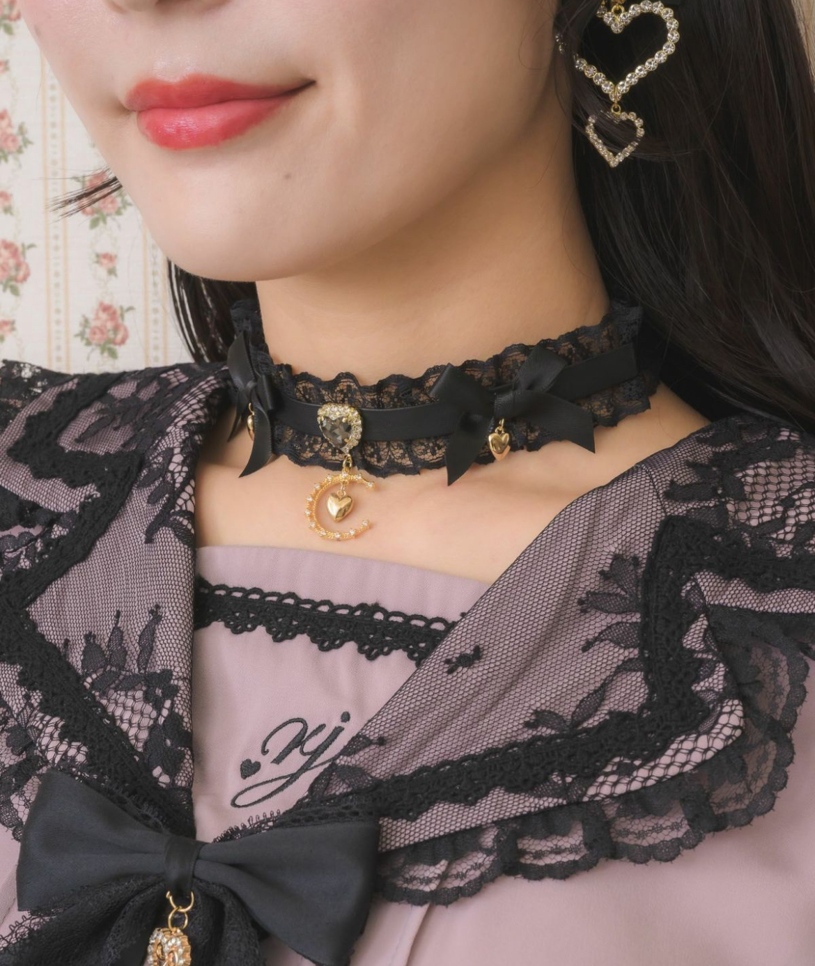 レース×リボンの絶妙バランスで首元を華やかに♡モノトーンコーデにはもちろん、あざと可愛いガーリーワンピや量産型との相性も◎さりげなく揺れるムーンチャームが特別感のあるアクセントに♪女の子の“好き”がぎゅっと詰まった、ワガママ叶えるチョーカーです。