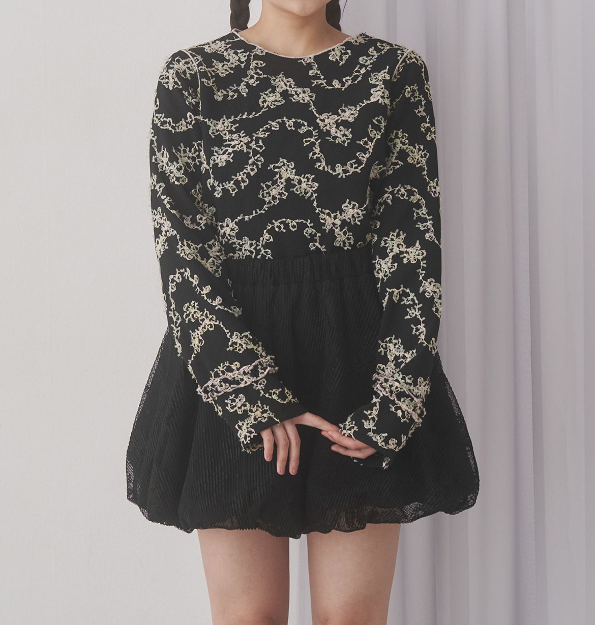 一枚で華やかな雰囲気を纏えるので、重ね着にも重宝するitem。