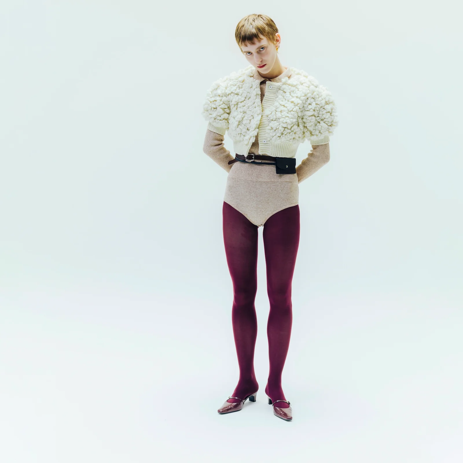 トップ部分は表情のあるリブ編みで、ボトム部分はフラットでゴワつかない仕様に。